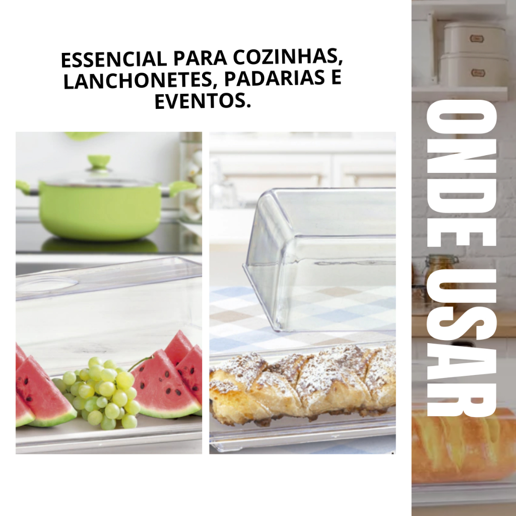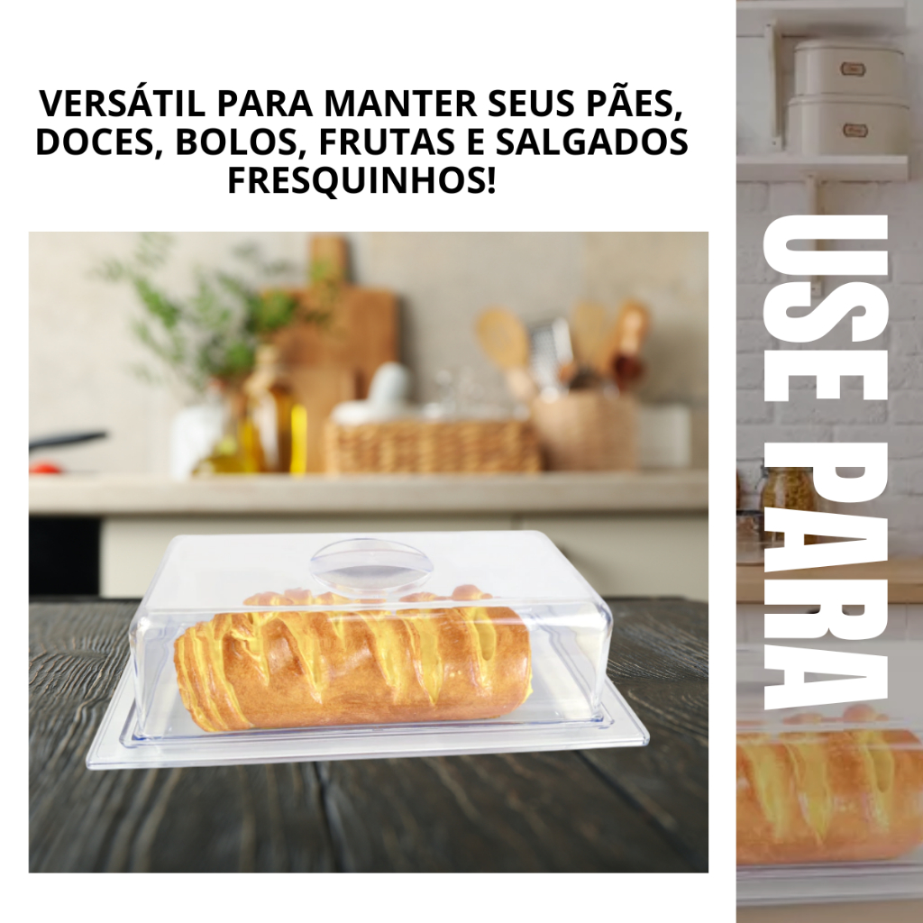 Porta Pães Salgados Doces Acrílico Retangular Transparente Protetor De Alimento