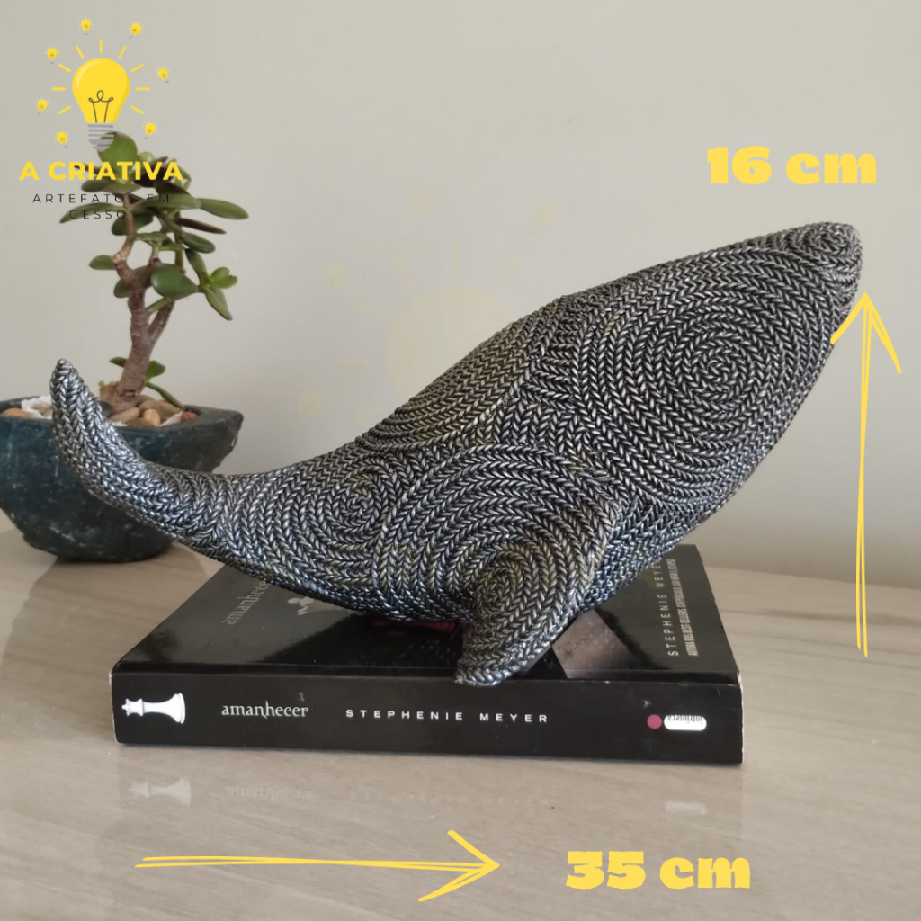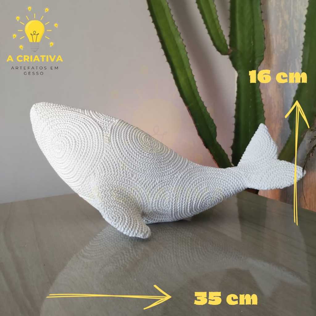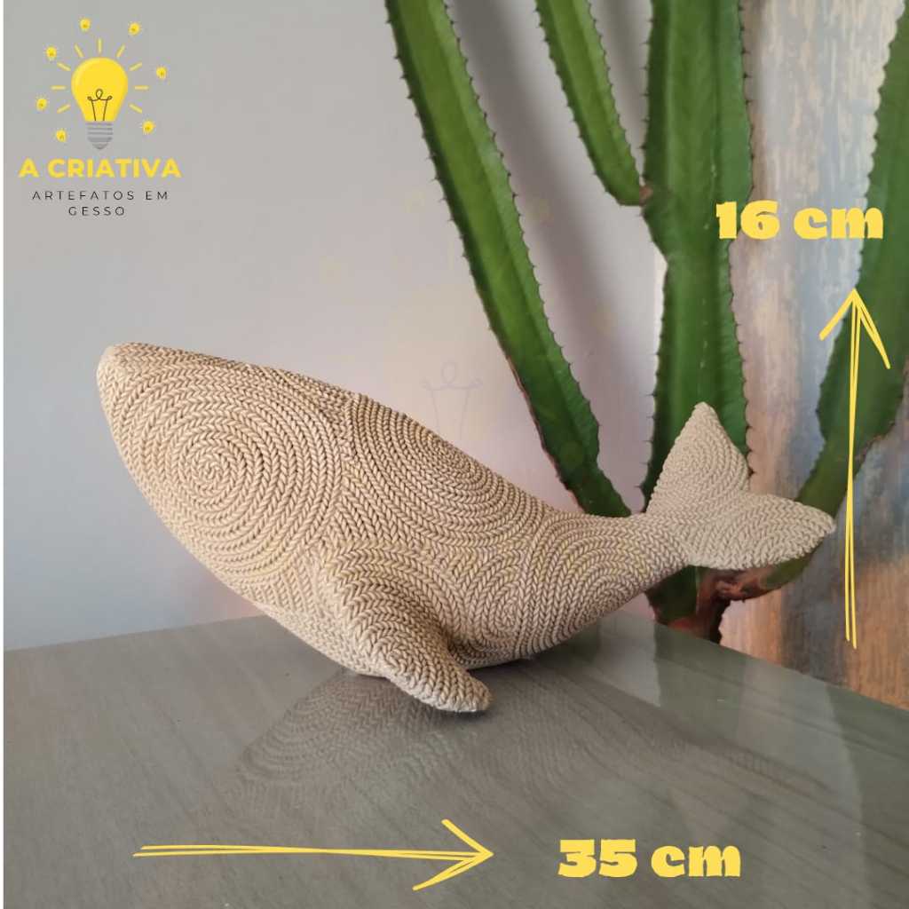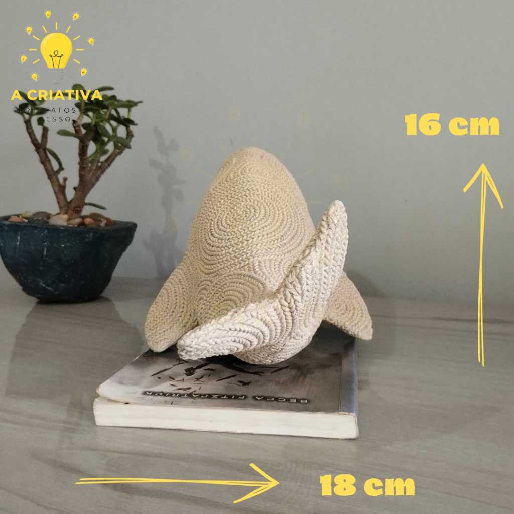 Baleia Decorada Escultura Estatueta Decoração Gesso Decorado Luxuosa Textura Crochê Peça Promoção