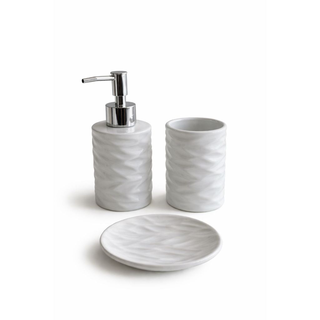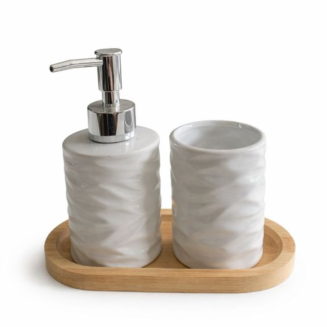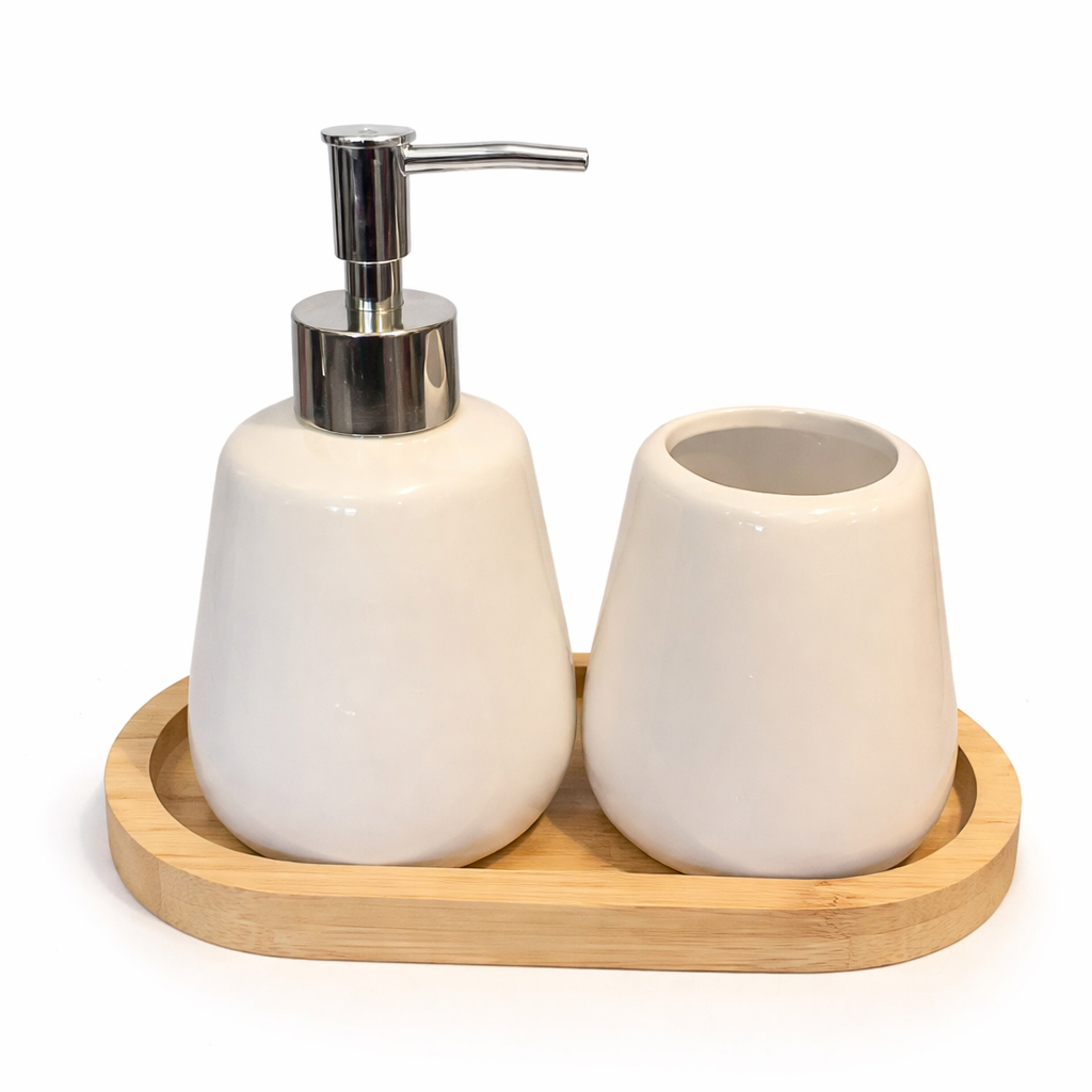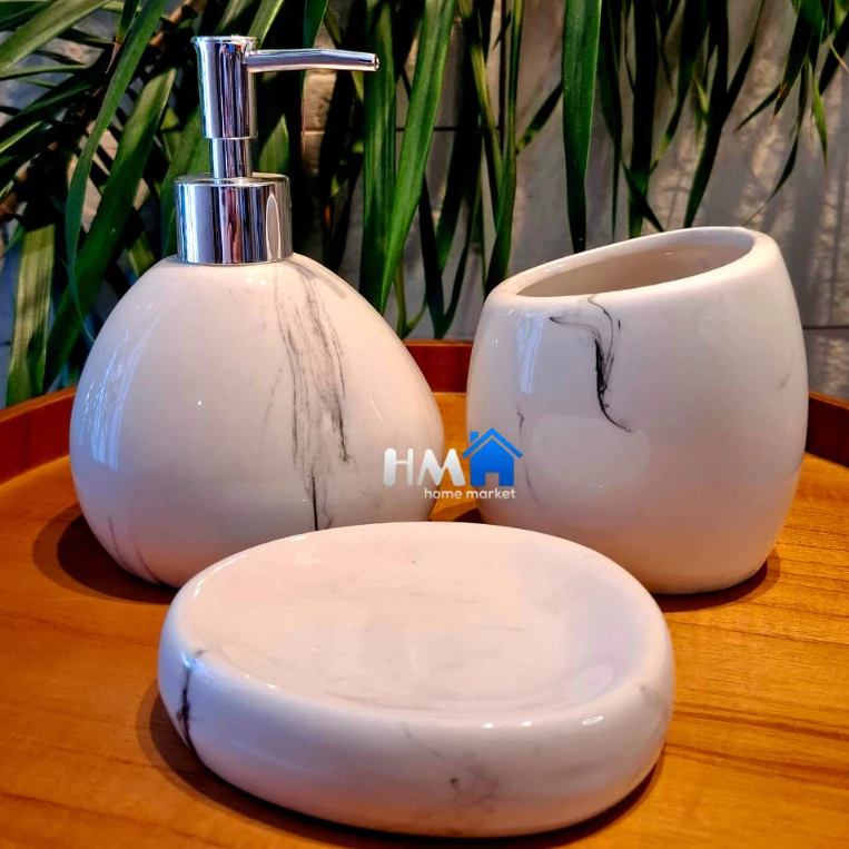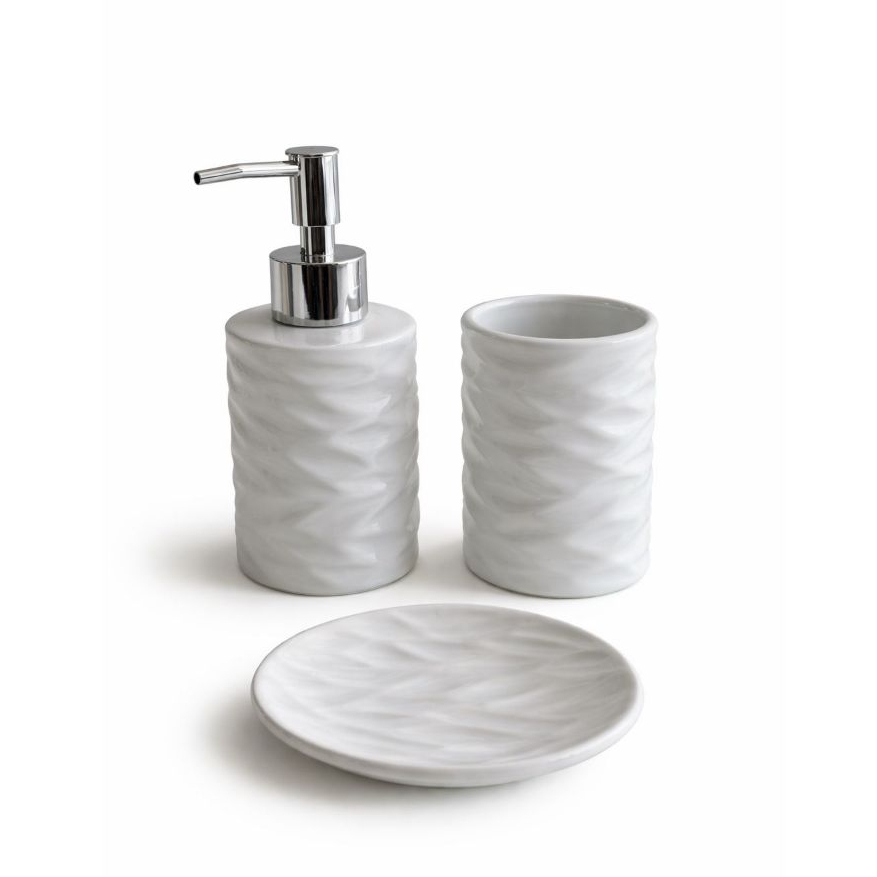 Kit Banheiro Lavabo 3 Peças (Pequenos Defeitos) Branco Porta Sabonete Líquido Suporte Escova