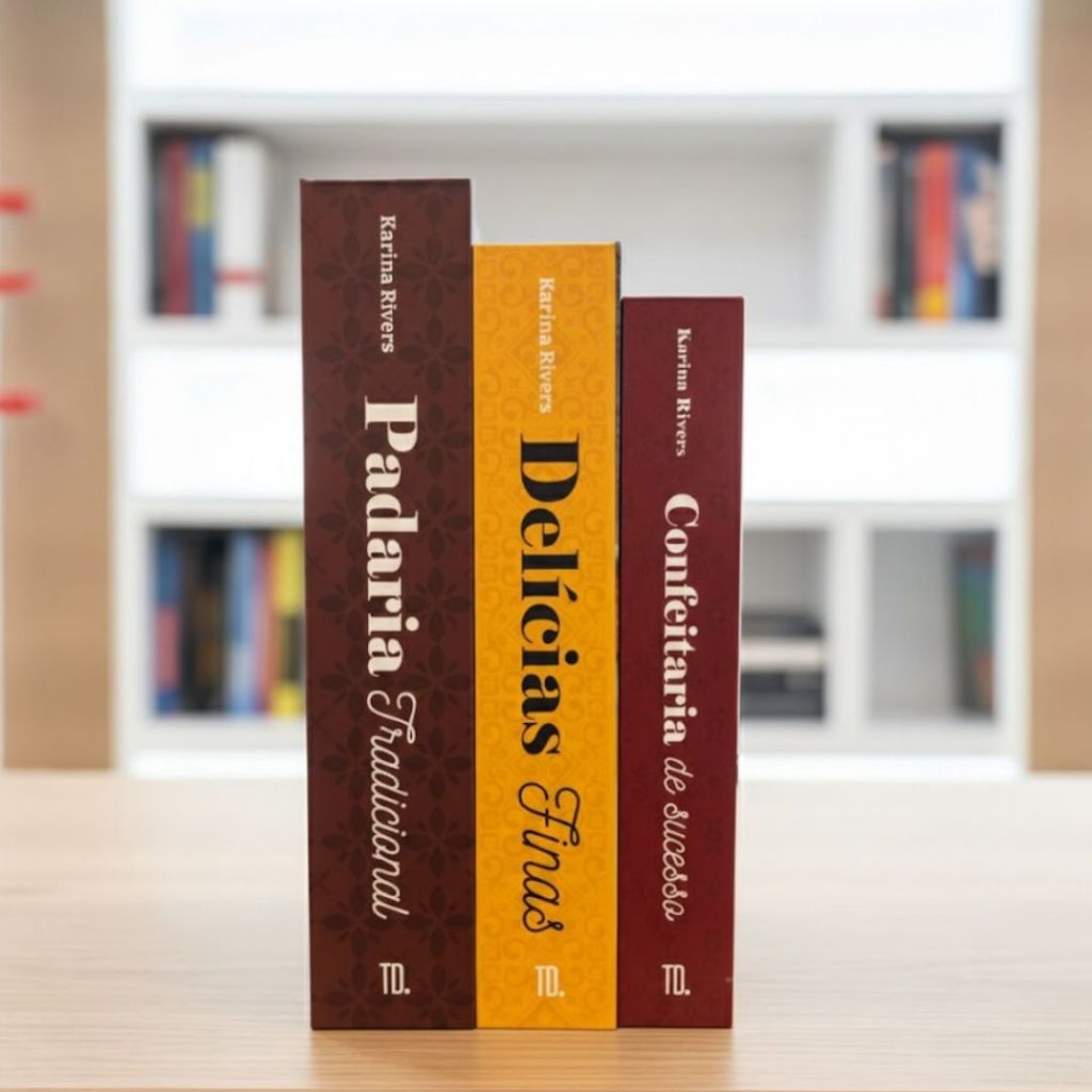 Kit Livro Decorativo Caixa Organizadora 3 Peças Padaria Cozinha Porta Joias e Documentos P M G