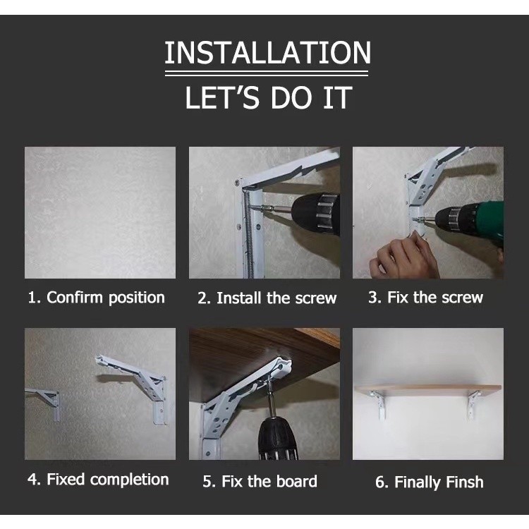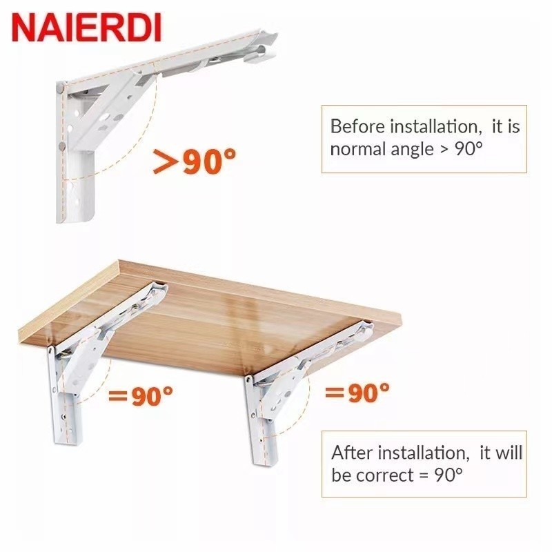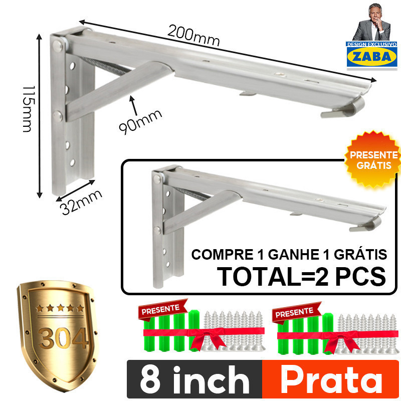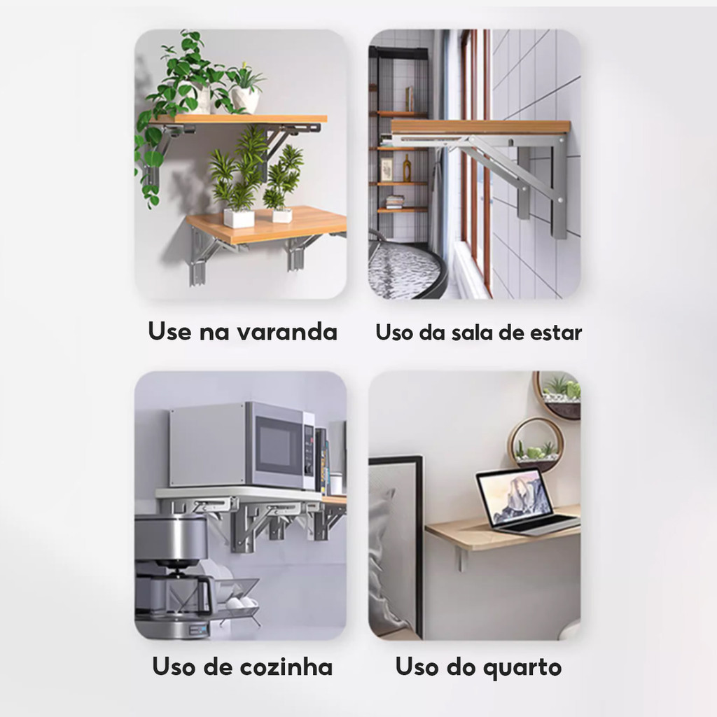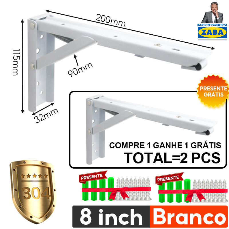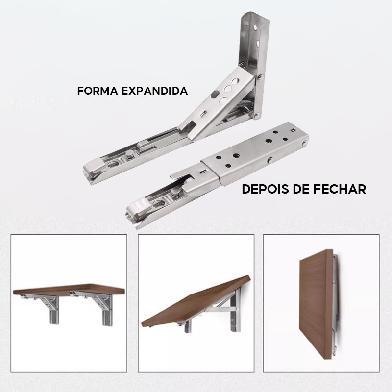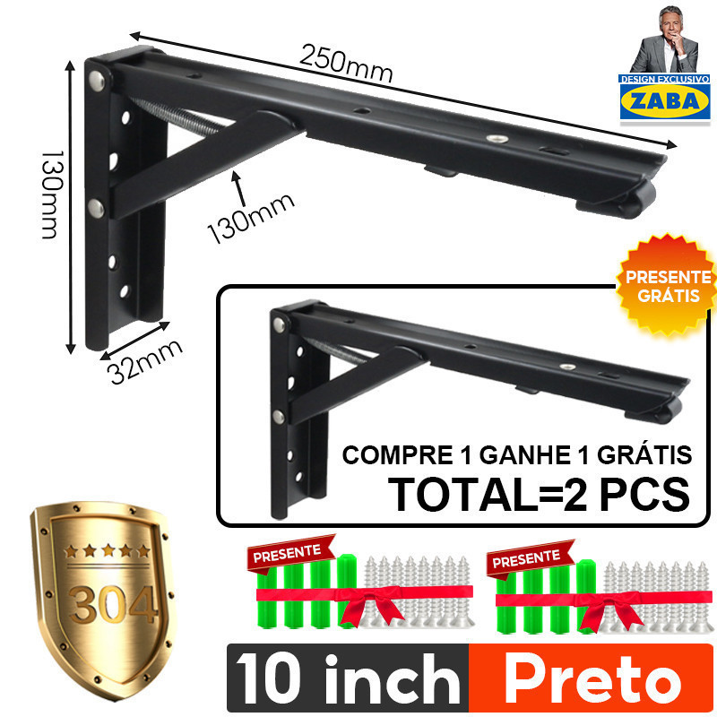 [2 Pcs] Suporte Mão Francesa Retrátil PAR Dobrável Reforçada Tampo Mesa - Varios TAMANHOS Preto E Branco