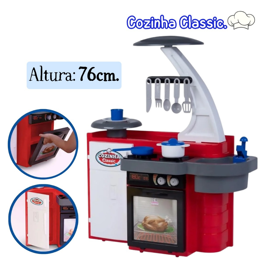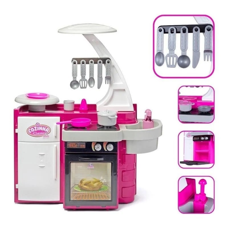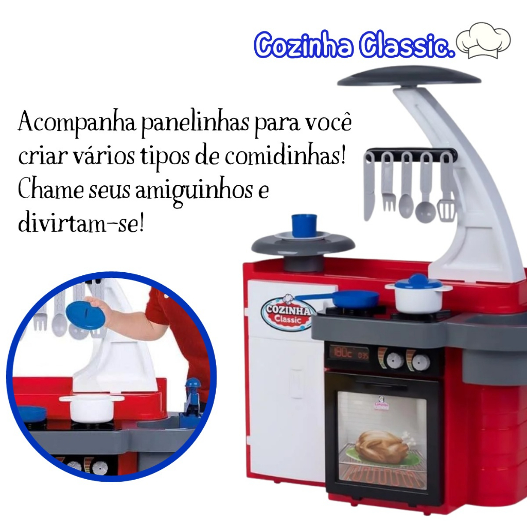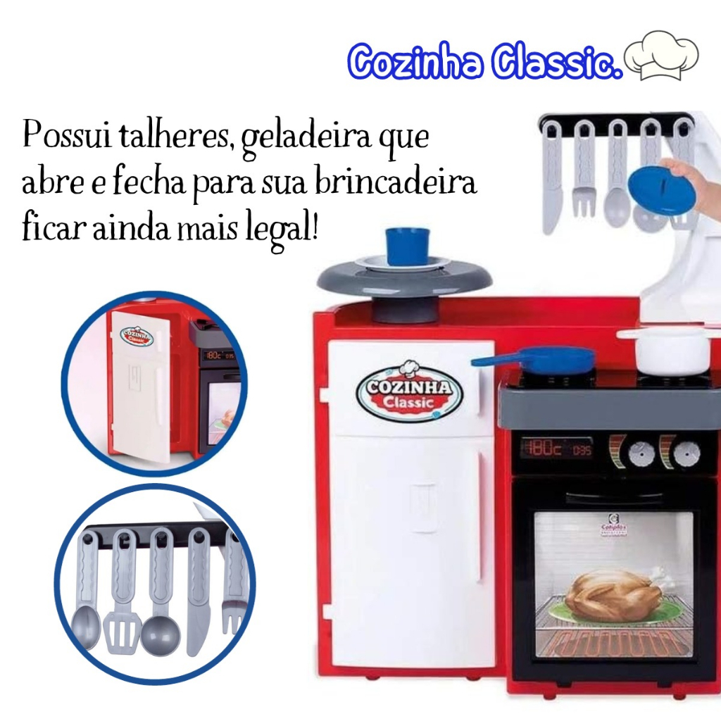 Cozinha Infantil Completa Geladeira Forno Pia Prato Frigideira Panela Classic - Cotiplás