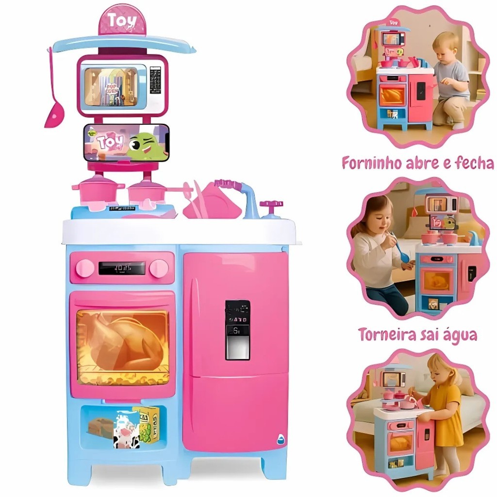 Cozinha Infantil Completa 92 cm de altura Toy Chef Sai Água De Verdade Samba Toys