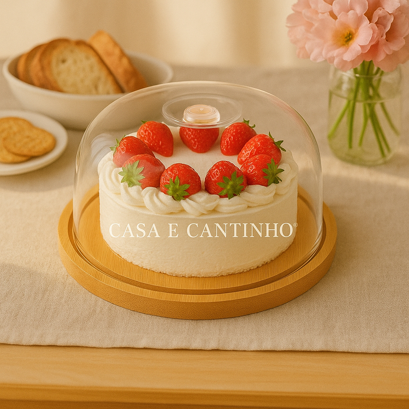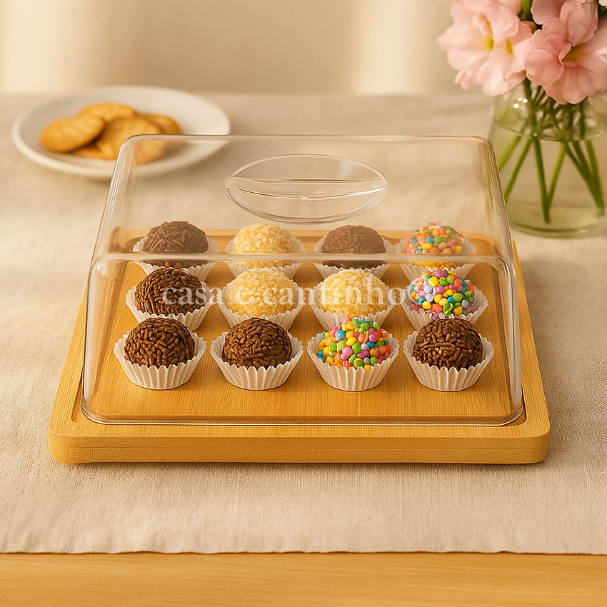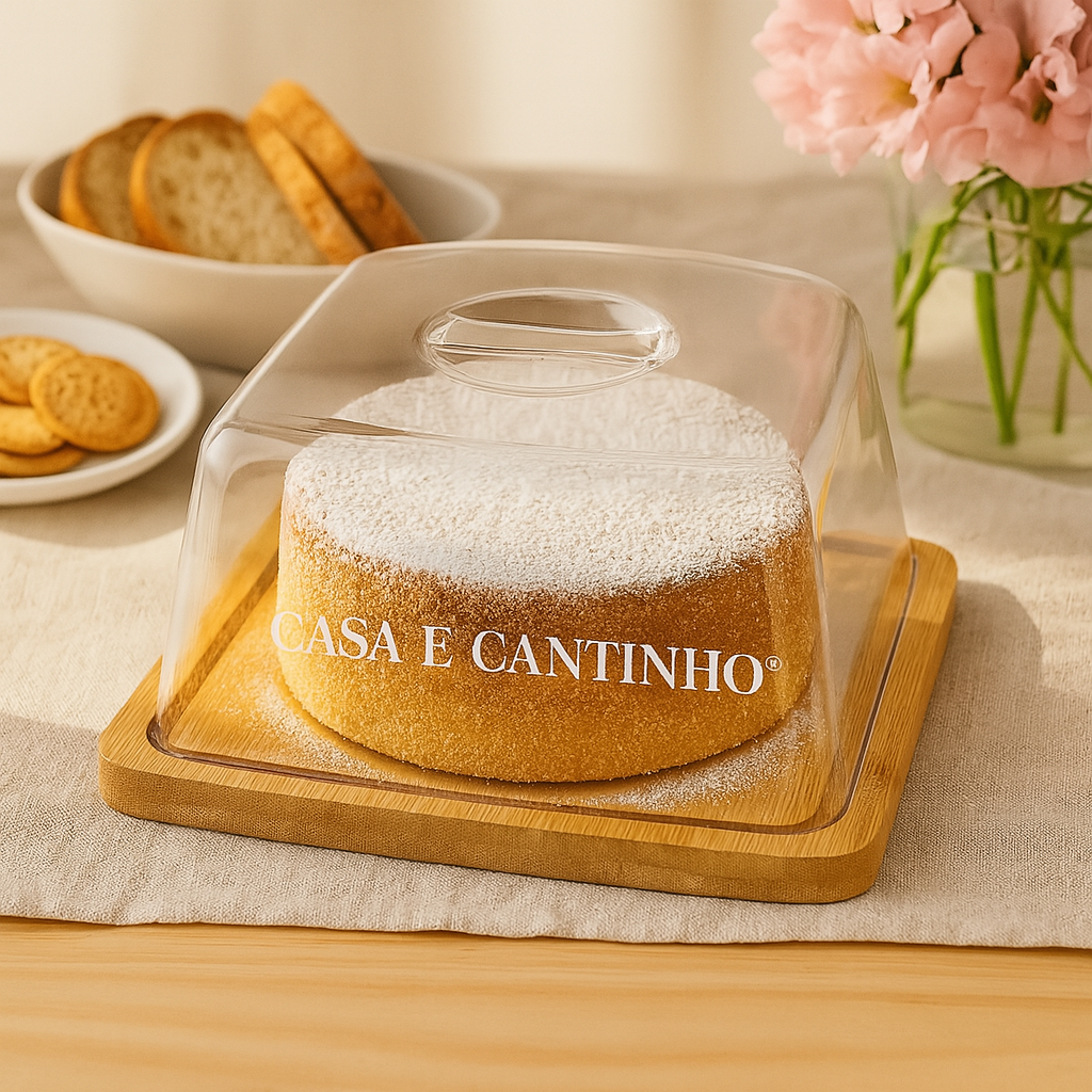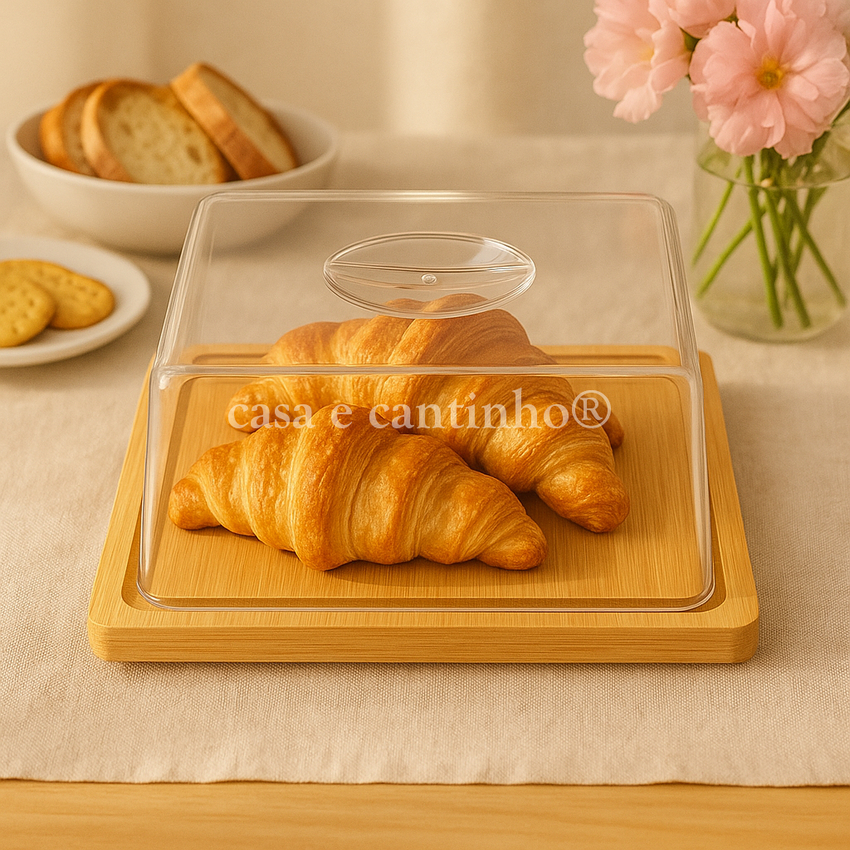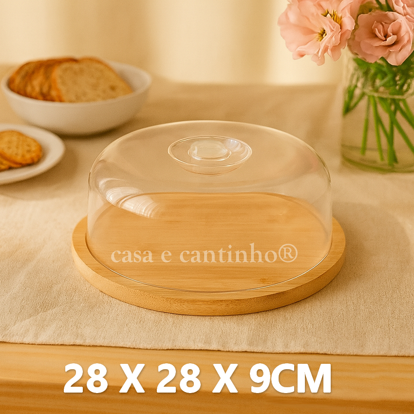 Boleira Com Tampa Acrílico e Bambu Redonda ou Retangular Multiuso Queijos Bolo Pães