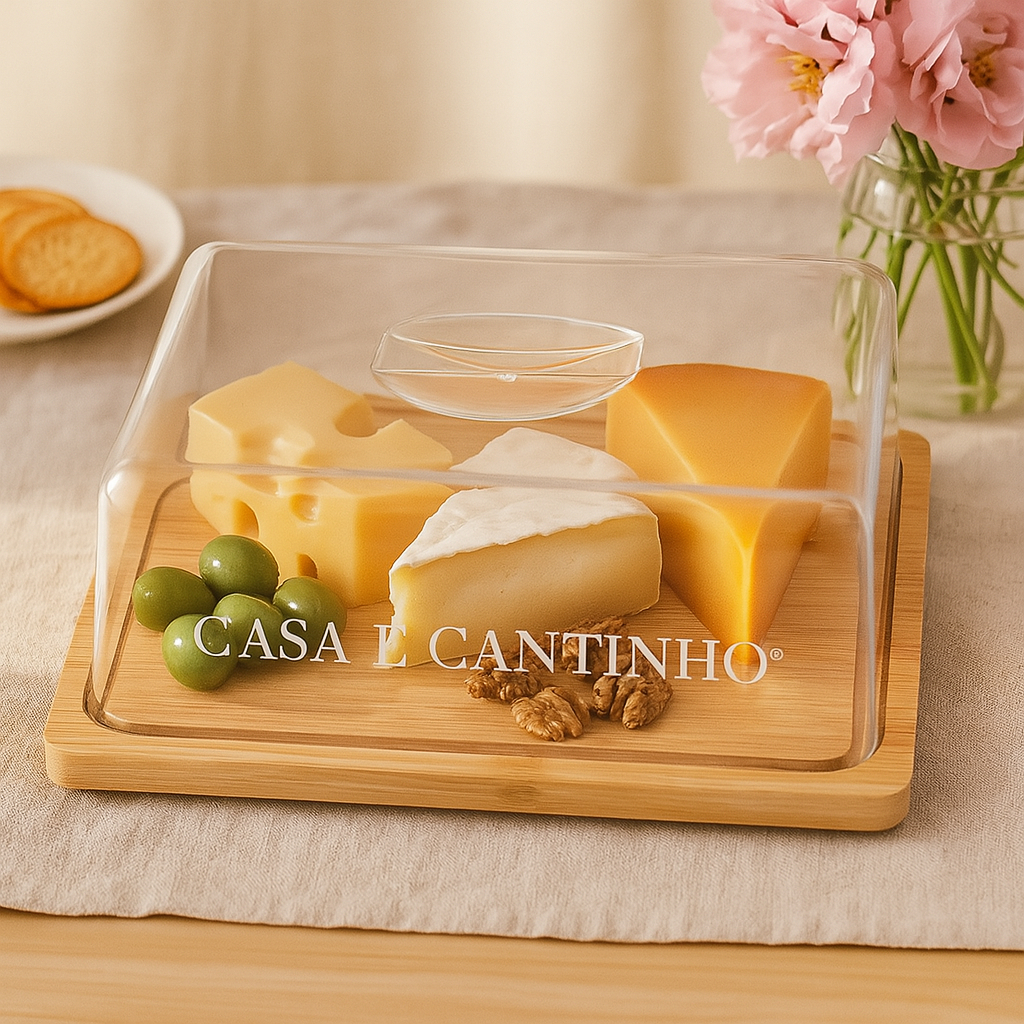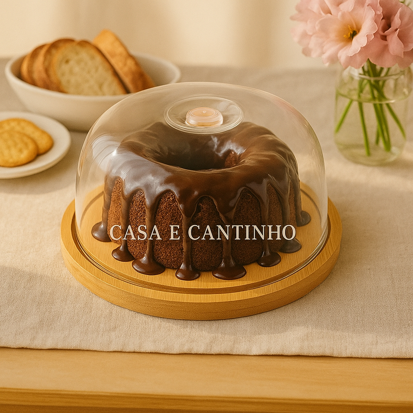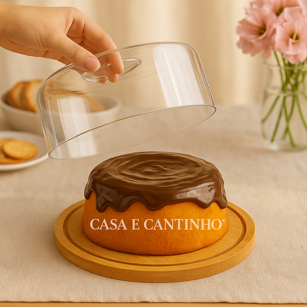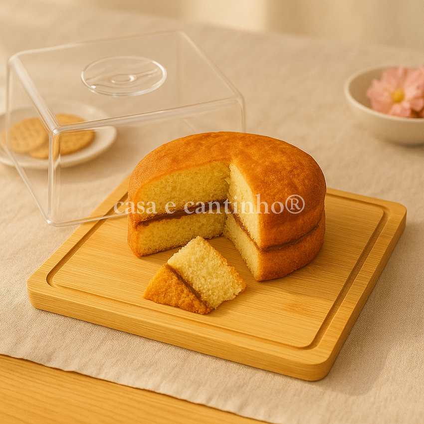 Boleira Com Tampa Acrílico e Bambu Redonda ou Retangular Multiuso Queijos Bolo Pães