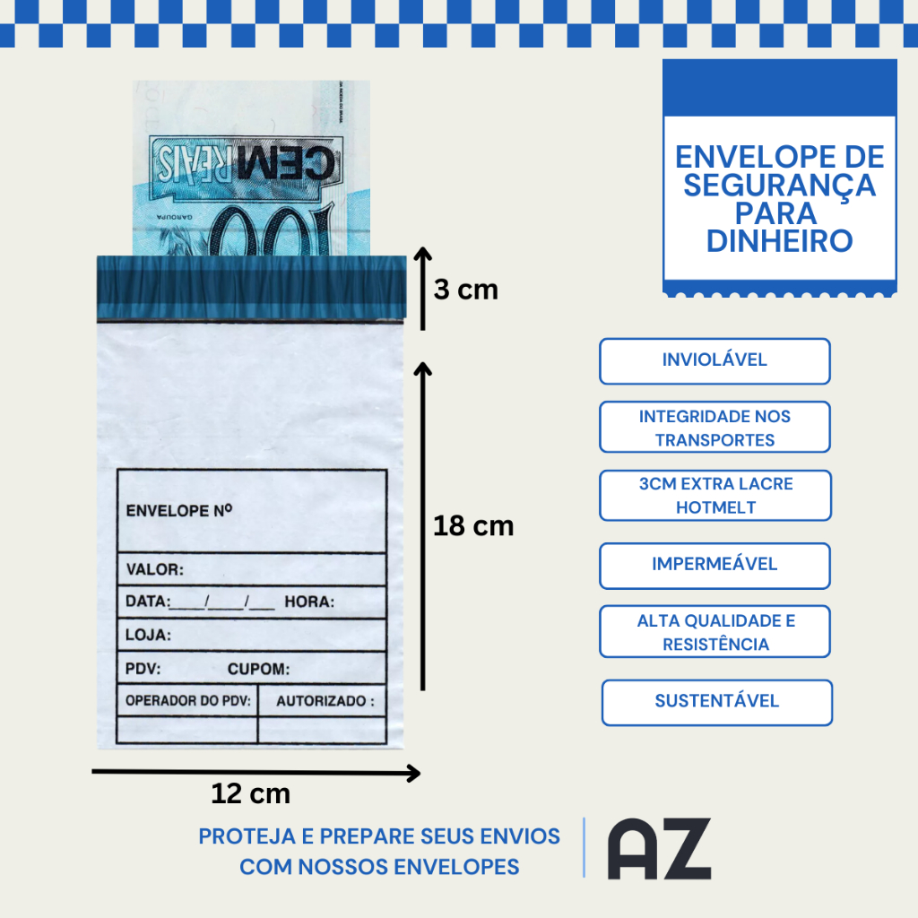 Envelope Sangria Para Dinheiro De Segurança 50, 100 ou 250 Unidades 12x18 Com Lacre Inviolável