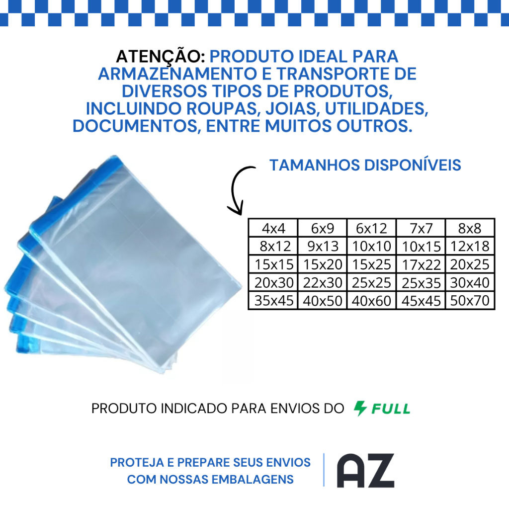 Kit 50 Sacos Adesivados Transparentes 4x4 6x9 6x12 7x7 8x8 8x12 9x13 10x15 12x18 15x15 15x20 30x40 35x45 45x45 50x70