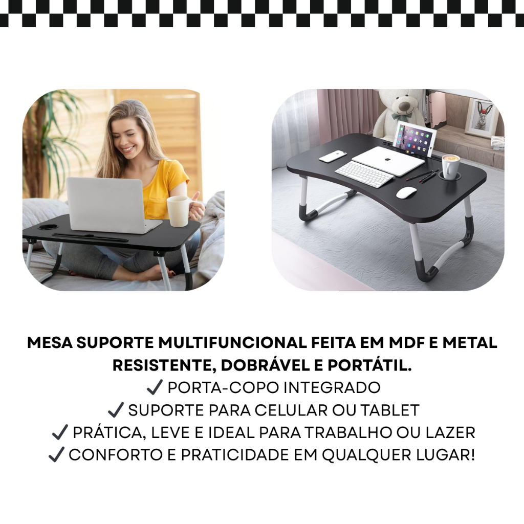 Mesa P/ Notebook Suporte Dobrável Cama Sofá Trabalho Laptop Home Office