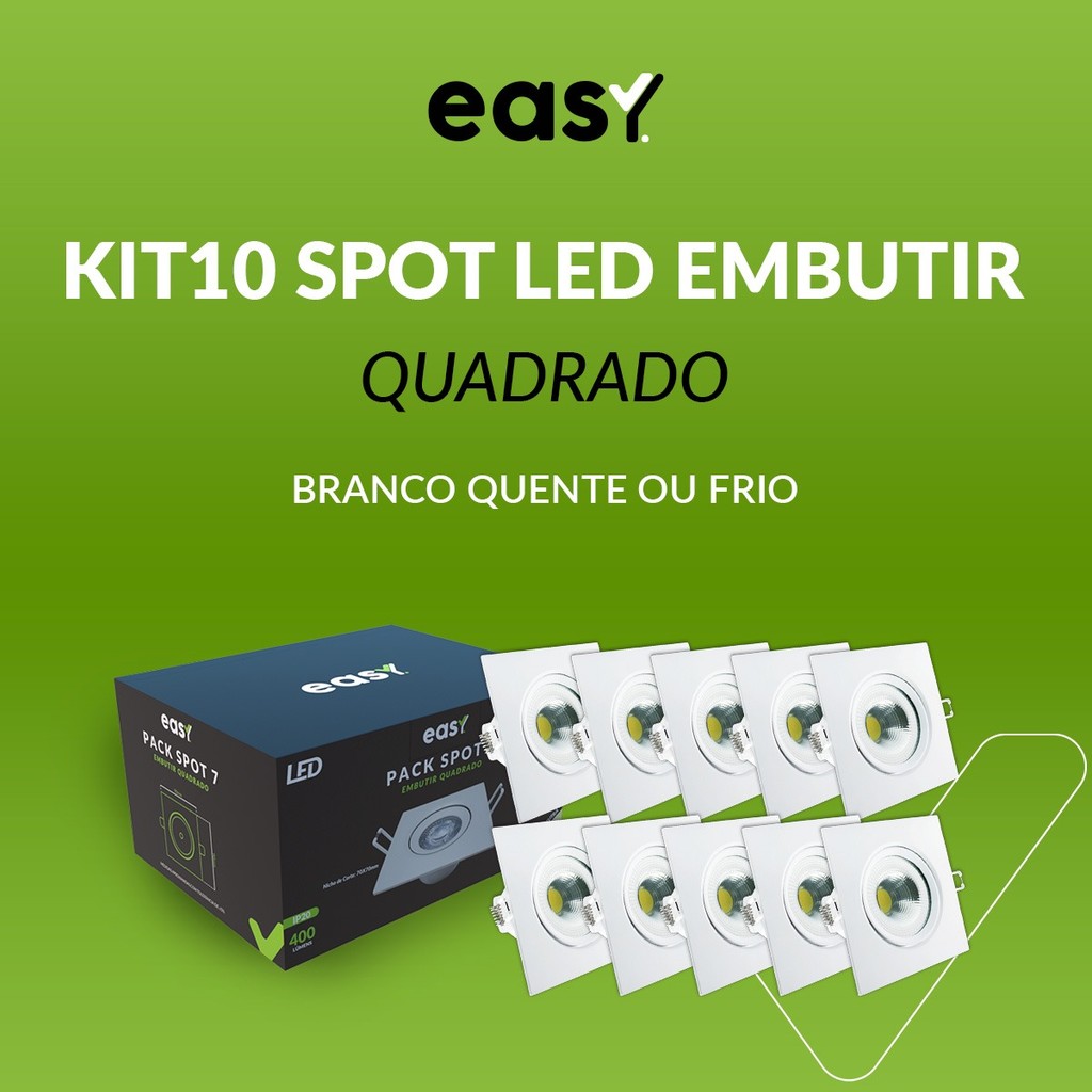 Kit 10 Spot de Led 7W 3000k Branco Quente, 4000k Branco Neutro e 6500k Branco Frio de Embutir Quadrado Bivolt - Easy