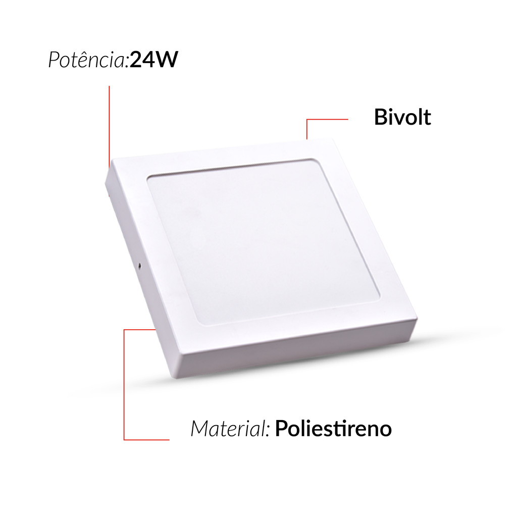 Painel Led Pop Quadrado Sobrepor 24W 6500k 28x28 Br Avant