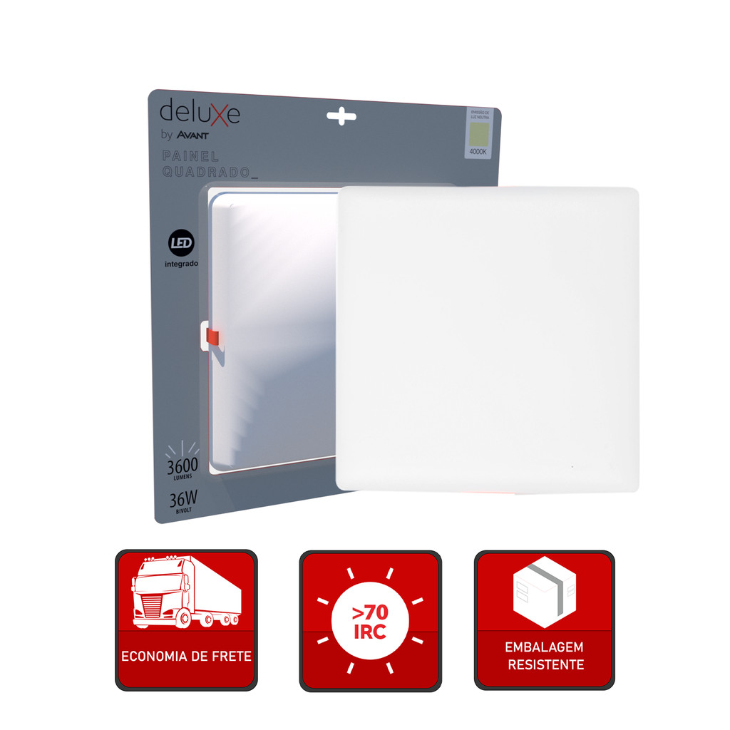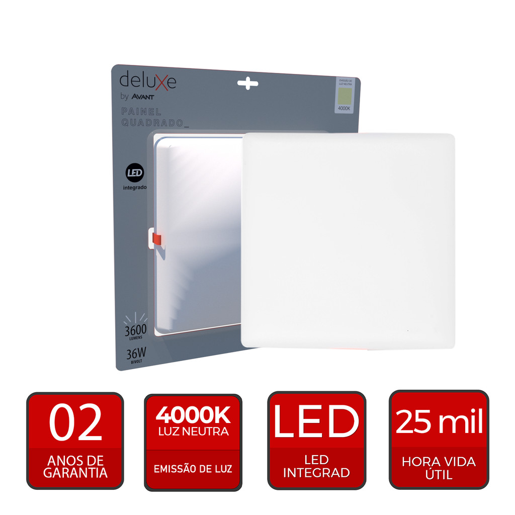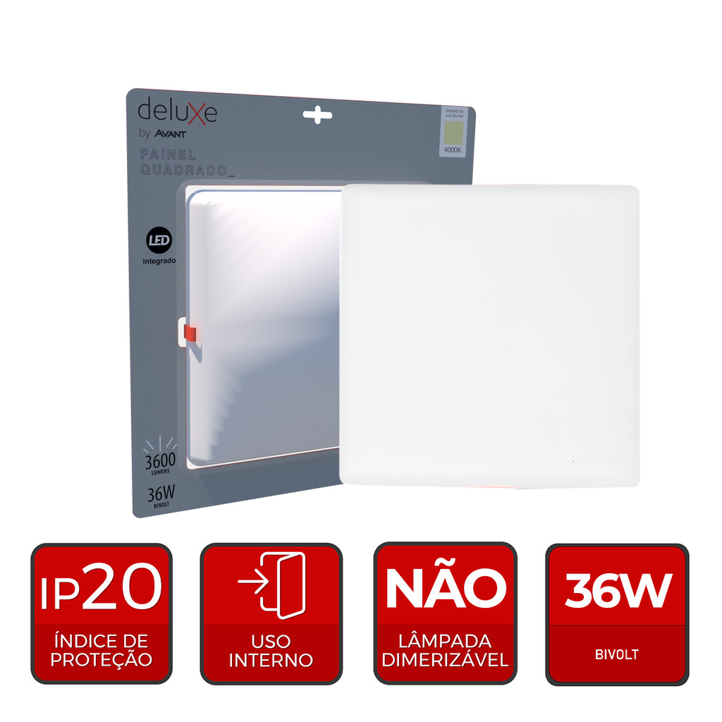 Painel led Plafon Flat Embutir 36w 4000k Branco Neutro 110v/220v Bivolt Quadrado Branco Cod:344240876 Deluxe By Avant