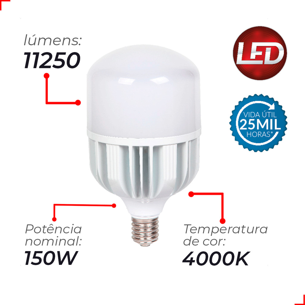 Lampada Led Bulbo Hp 150w 4000k Branco Neutro E40 110v/220v Ip20 Branco Cod: 789010874 Avant