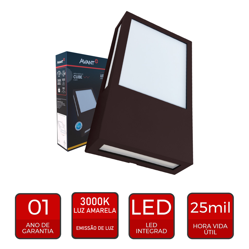 Arandela Led Externa Cube 12w 3000K Cafe Avant