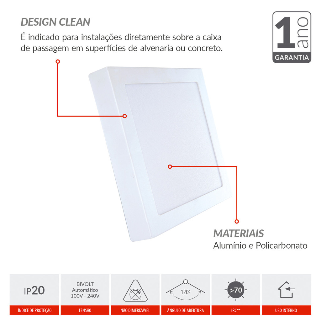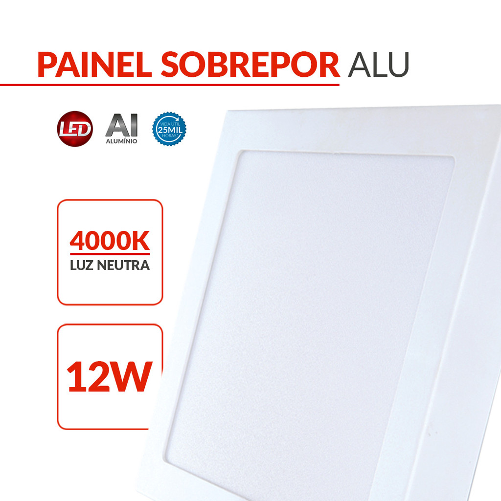 Painel Plafon Led Alu 12w 4000k Sob. Quadrado 110v/220v 17cm Avant