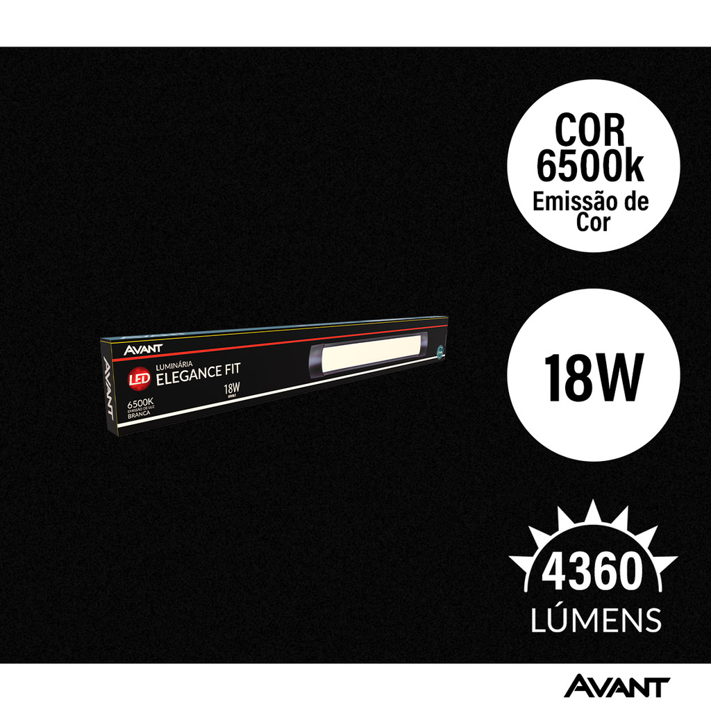 Luminaria Led Elegance Fit 18w 6500K 110v/220v Preto Avant