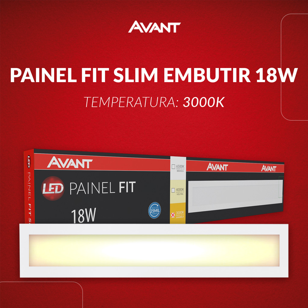 Painel Led Fit Slim Embutir 60cm 18w 3000k, 4000k ou 6500k 110v/220v Branco Avant