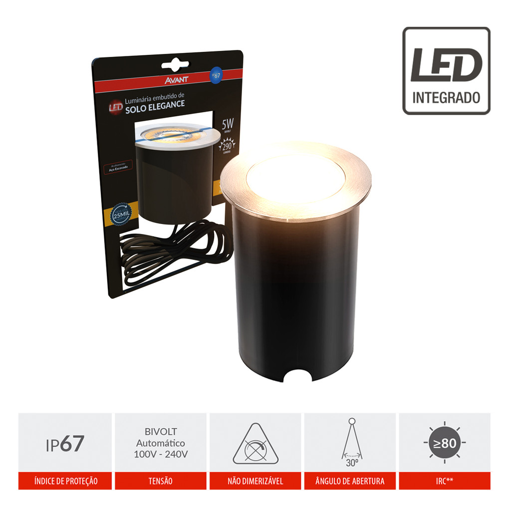 Luminaria Solo Elegance 5w 3000k Bivolt Aço Escovado Avant