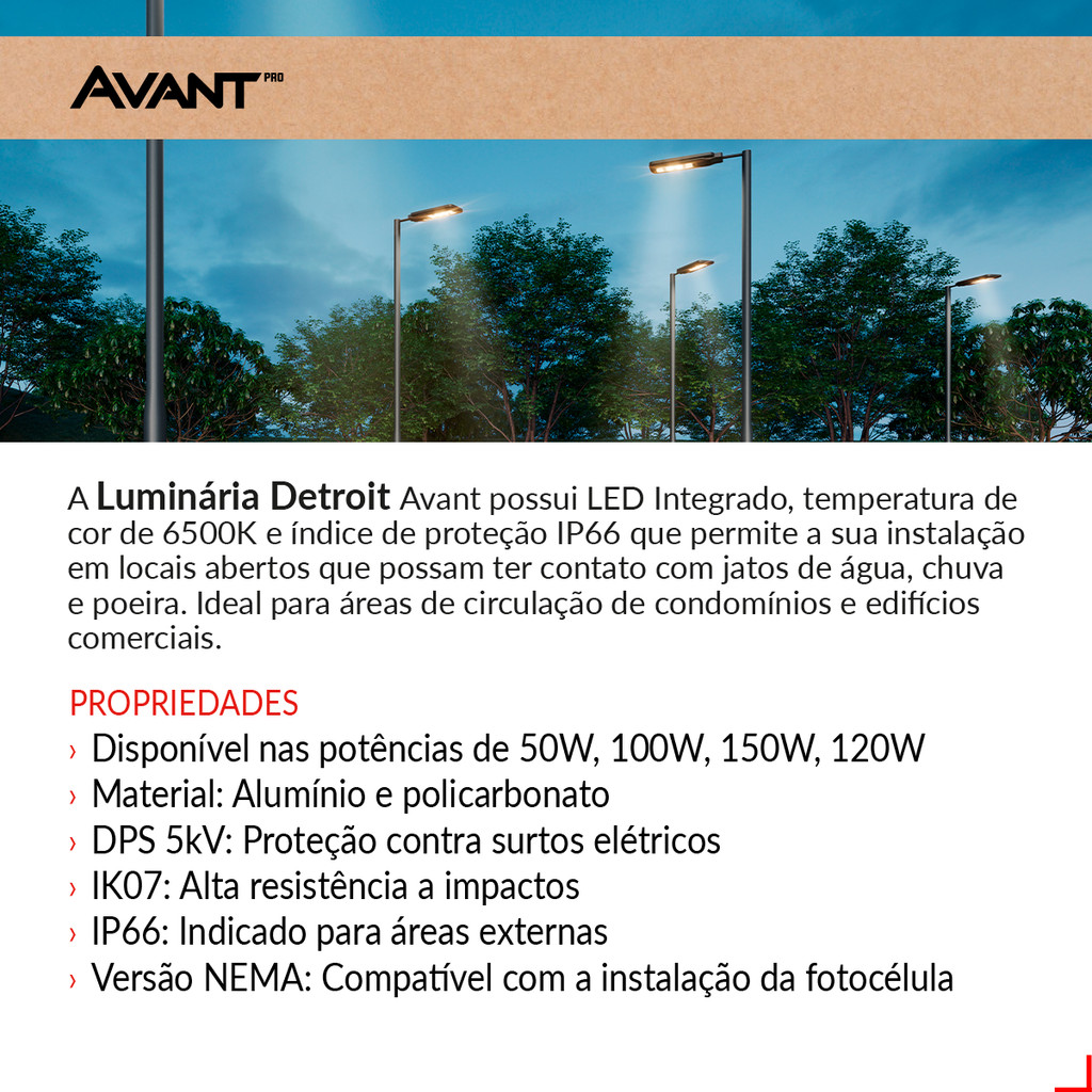 Luminaria Led Poste Detroit 6500k Bivolt 100w Avant Pro