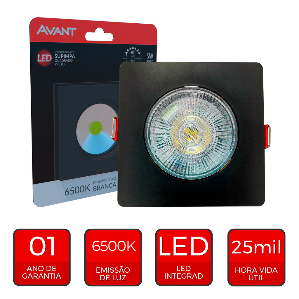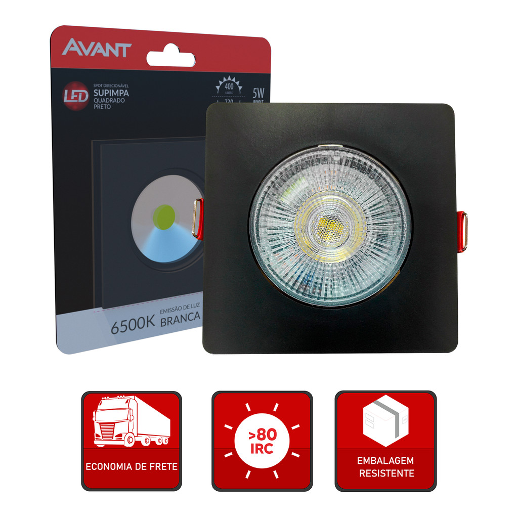 Spot Led Authentic Emb. Quadrado 5w 6500k 9cm PF Avant