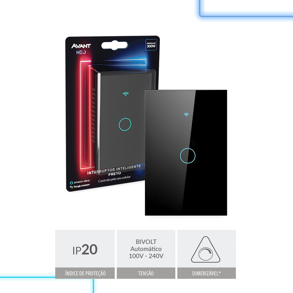 Interruptor Inteligente Touch WiFi Preto Avant Neo