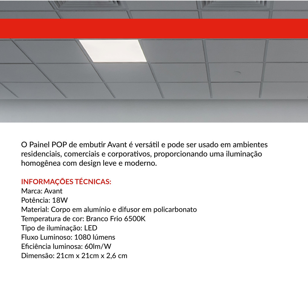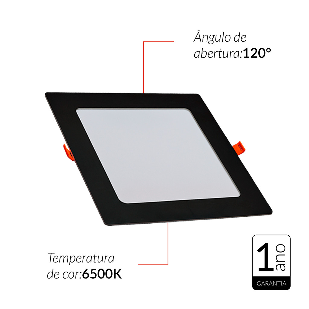 Painel led Plafon Pop Embutir 18w 6500k Branco Frio 22cm 110v/220v Bivolt Ip20 Quadrado Preto Cod:903051370 Avant