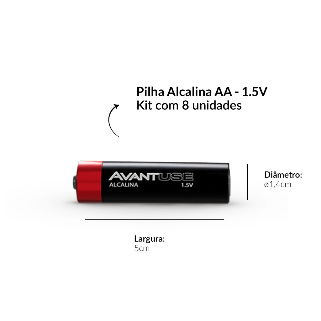 Kit 8 Pilhas Alcalina AA Pequena 1.5V Avant Use