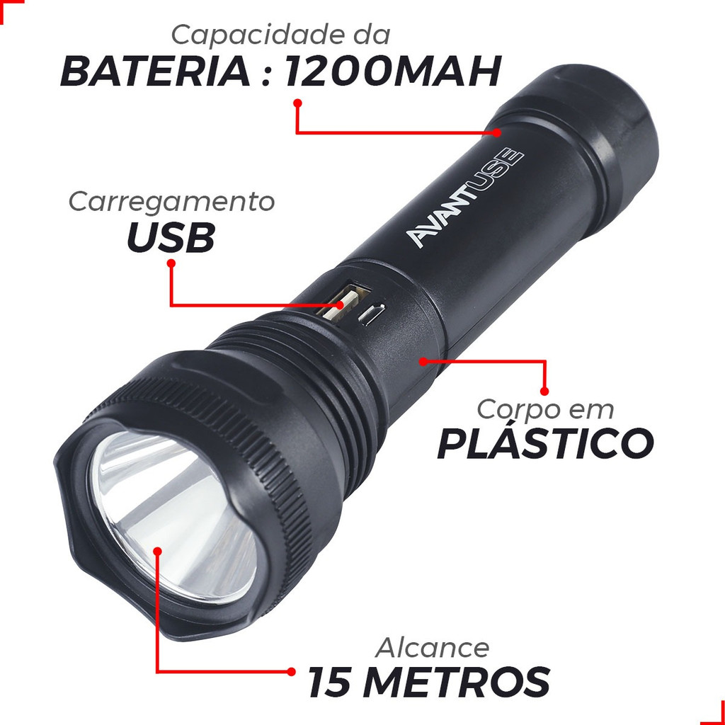 Lanterna Adventure Recarregável Led 3w Tática Camping Avant