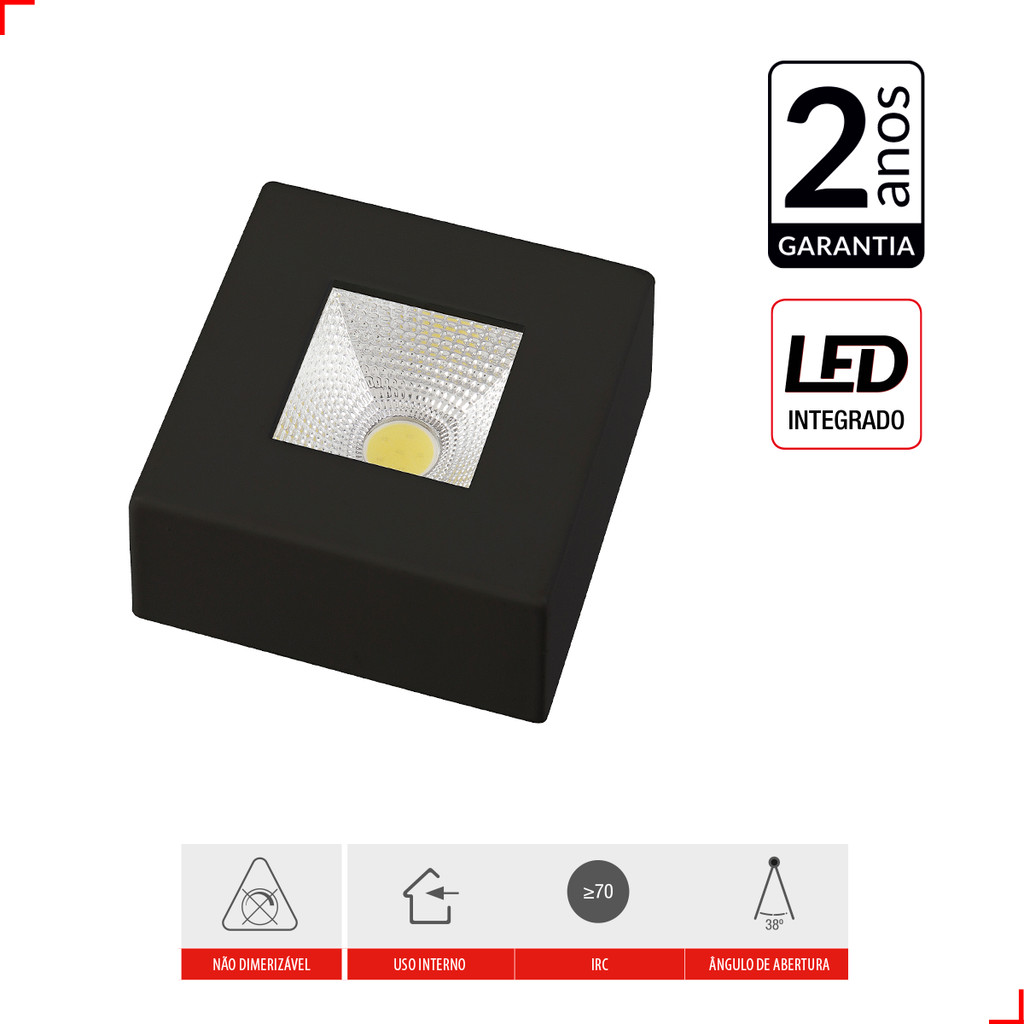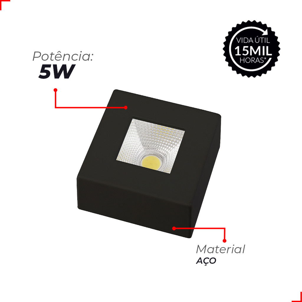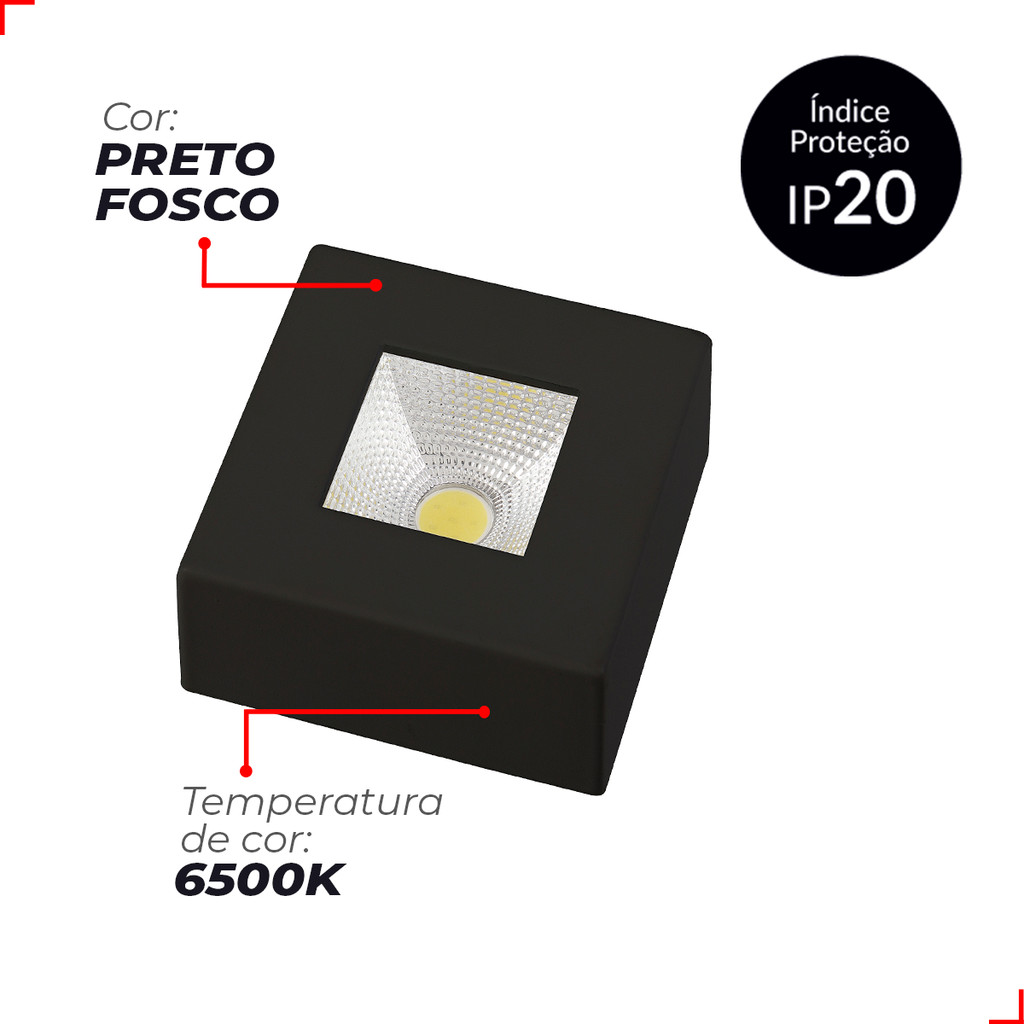 Spot Led Authentic Beiral de teto 5w 6500k Branco Frio 7.5cm Bivolt Quadrado Preto Cod: 907051376 Deluxe By Avant