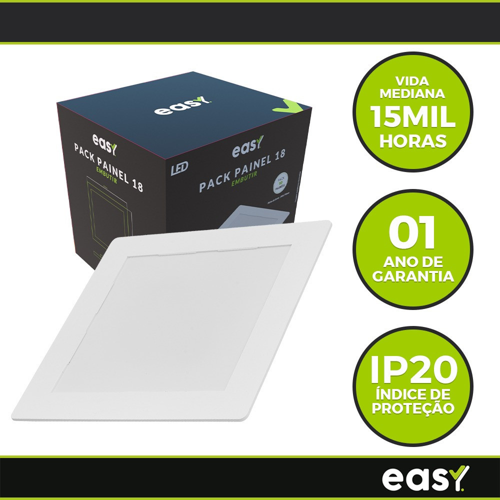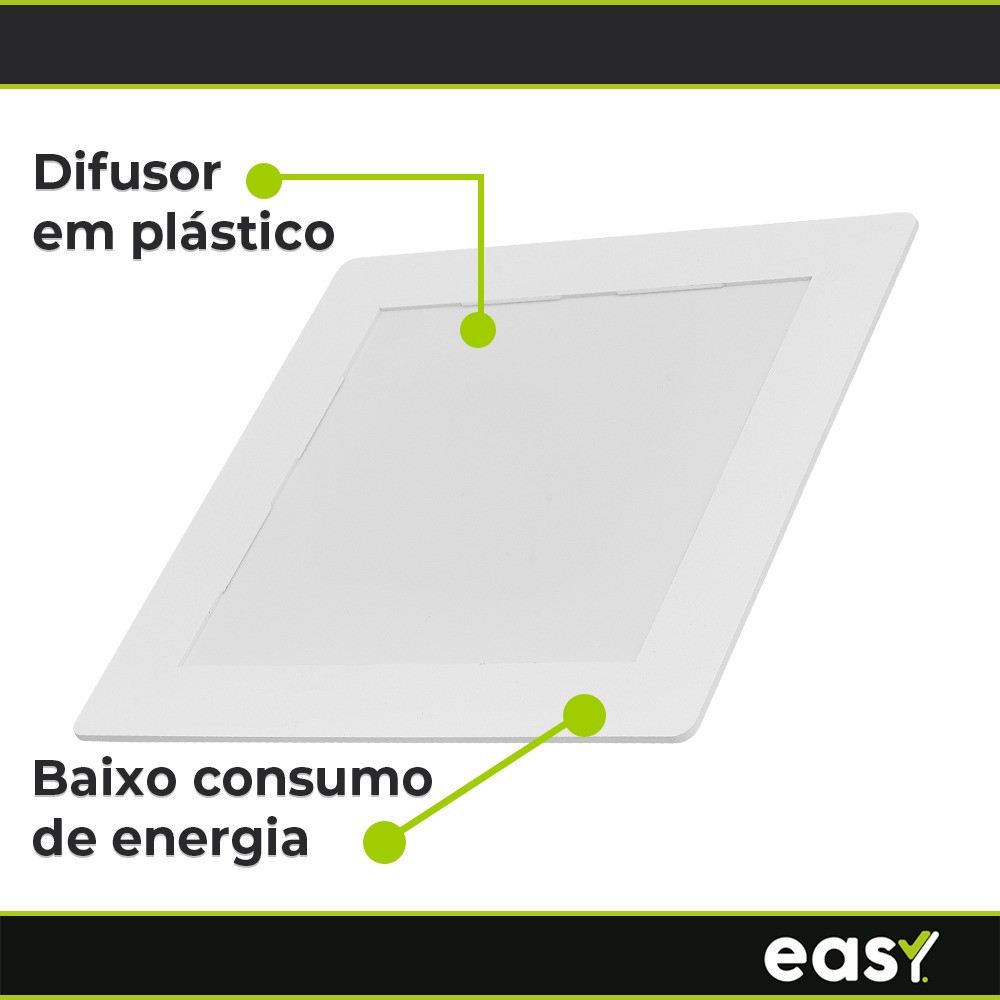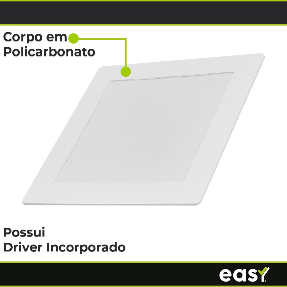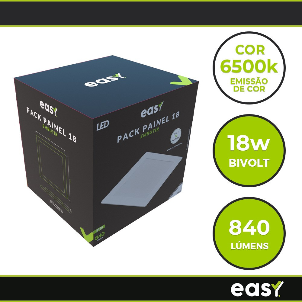 Kit 10 Luminária Painel Led Embutir Branco 18w 6500K Luz Branco Frio Quadrado Bivolt - Easy