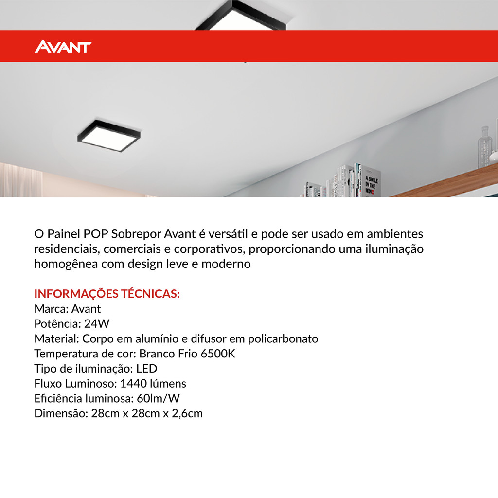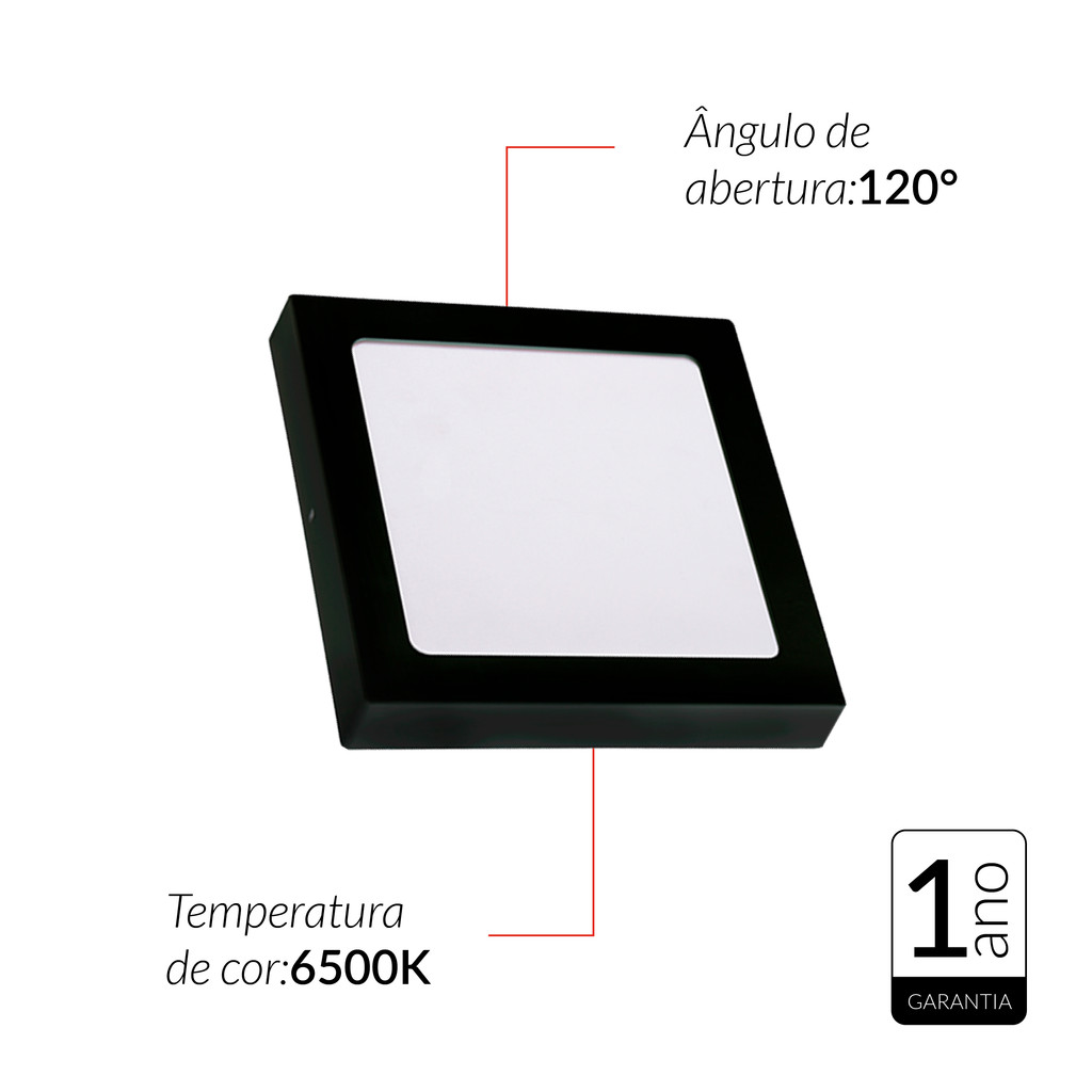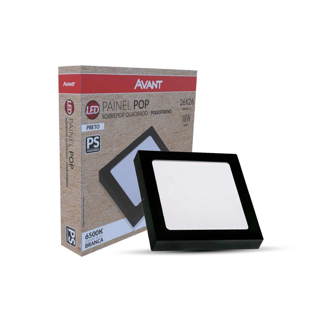Kit 10 Painel led Plafon Pop Sobrepor 24w 6500k Branco Frio 30cm 110v/220v Quadrado Preto Cod:903081377-10 Avant
