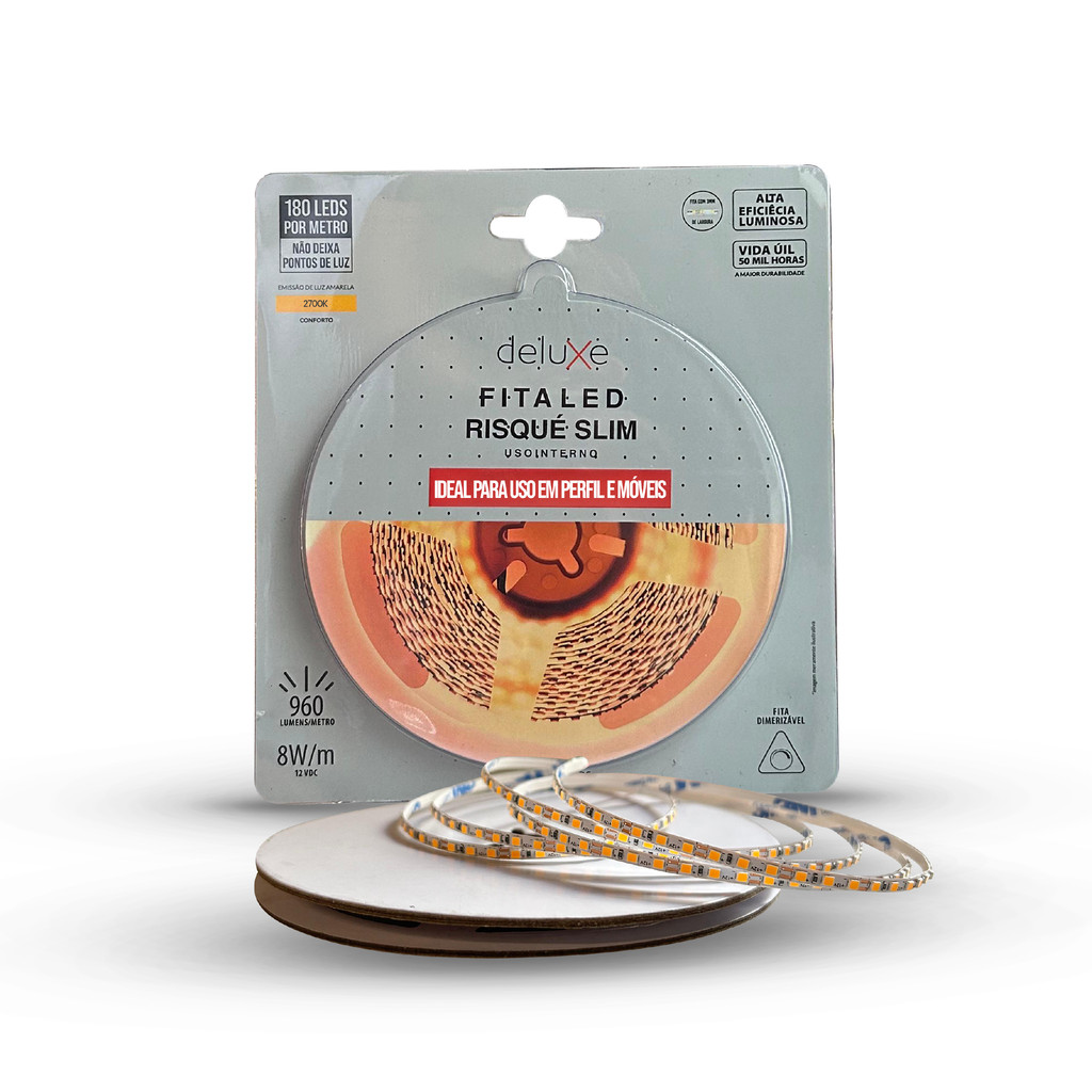 Fita Led Risque Ultra fina 3mm 8W 2700K 5m 12V Br Deluxe
