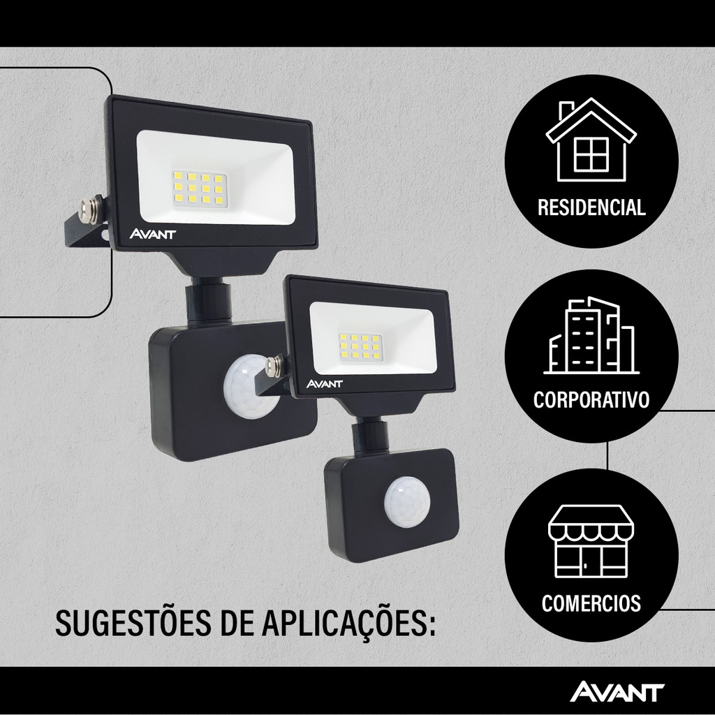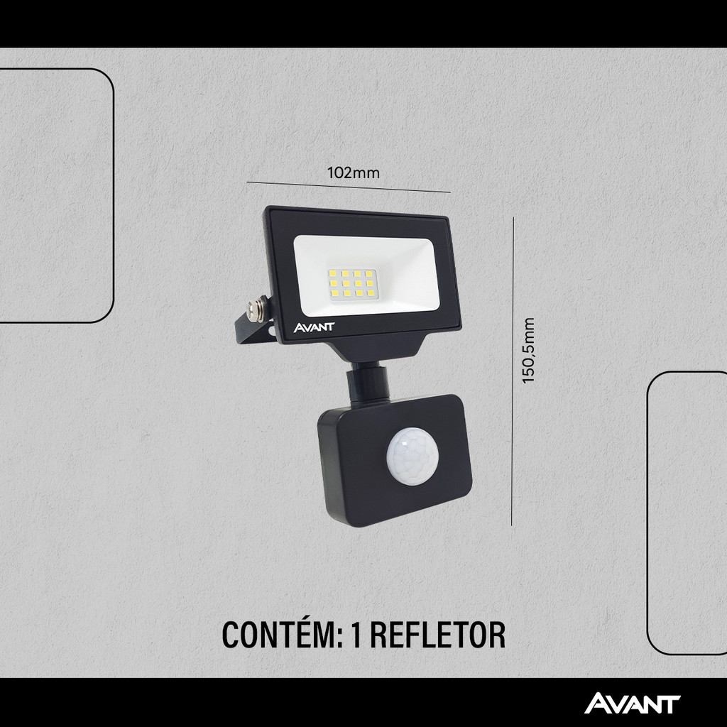 Refletor Led Com Sensor 10w 800lm 6500k Bivolt Ip66 Avant