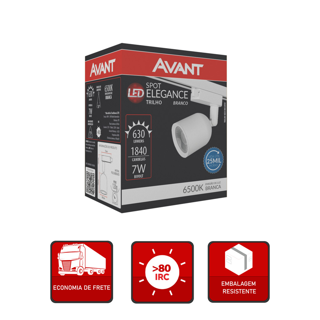 Spot Led Elegance Branco 7w 530lm 6500k Branco Frio Bivolt para Iluminação de Trilho Avant