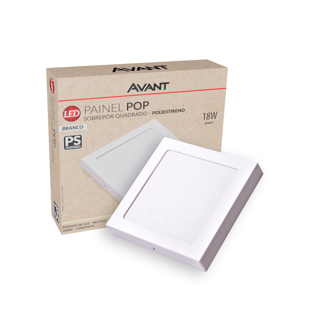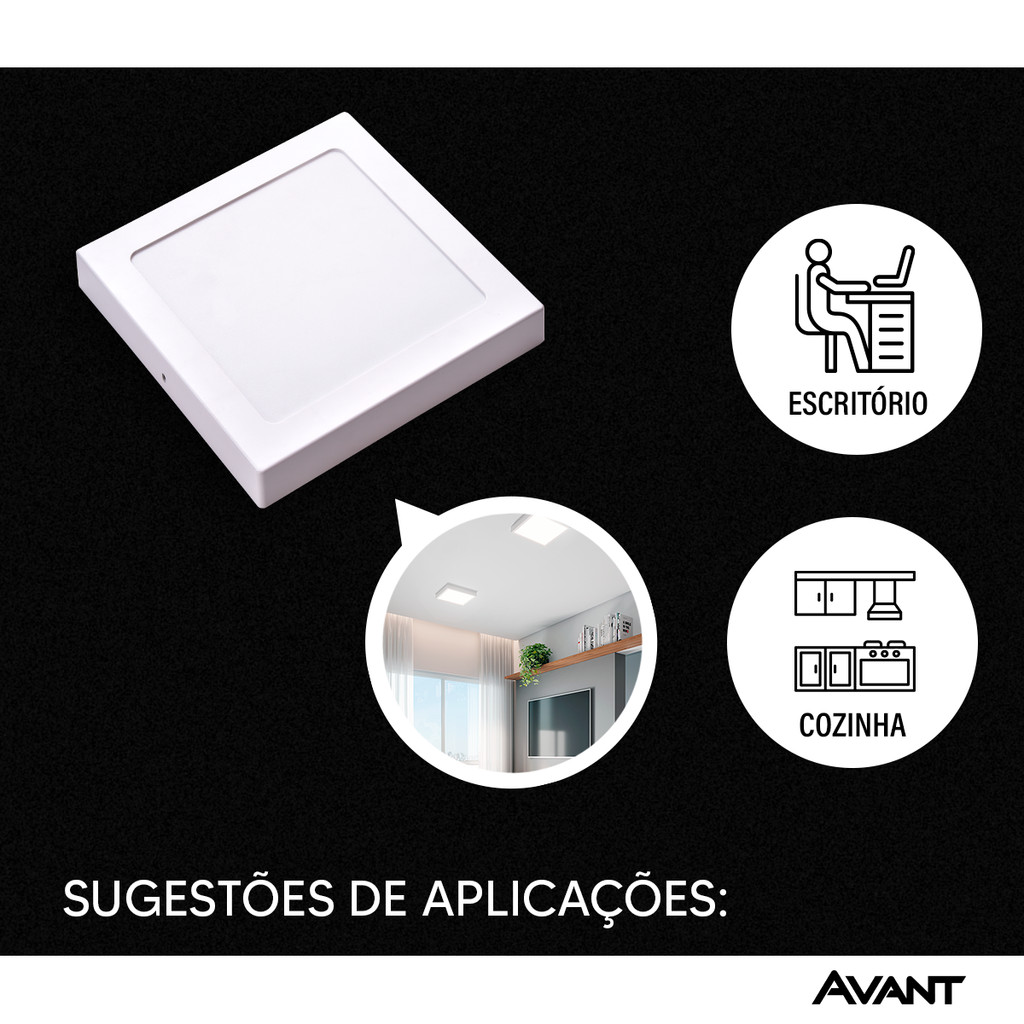 Kit 10 Painel Plafon Led Pop Sob. Quadrado 18w 3000k, 4000k e 6500k Branco Quente , Neutro e Frio 19x19cm Branco Avant
