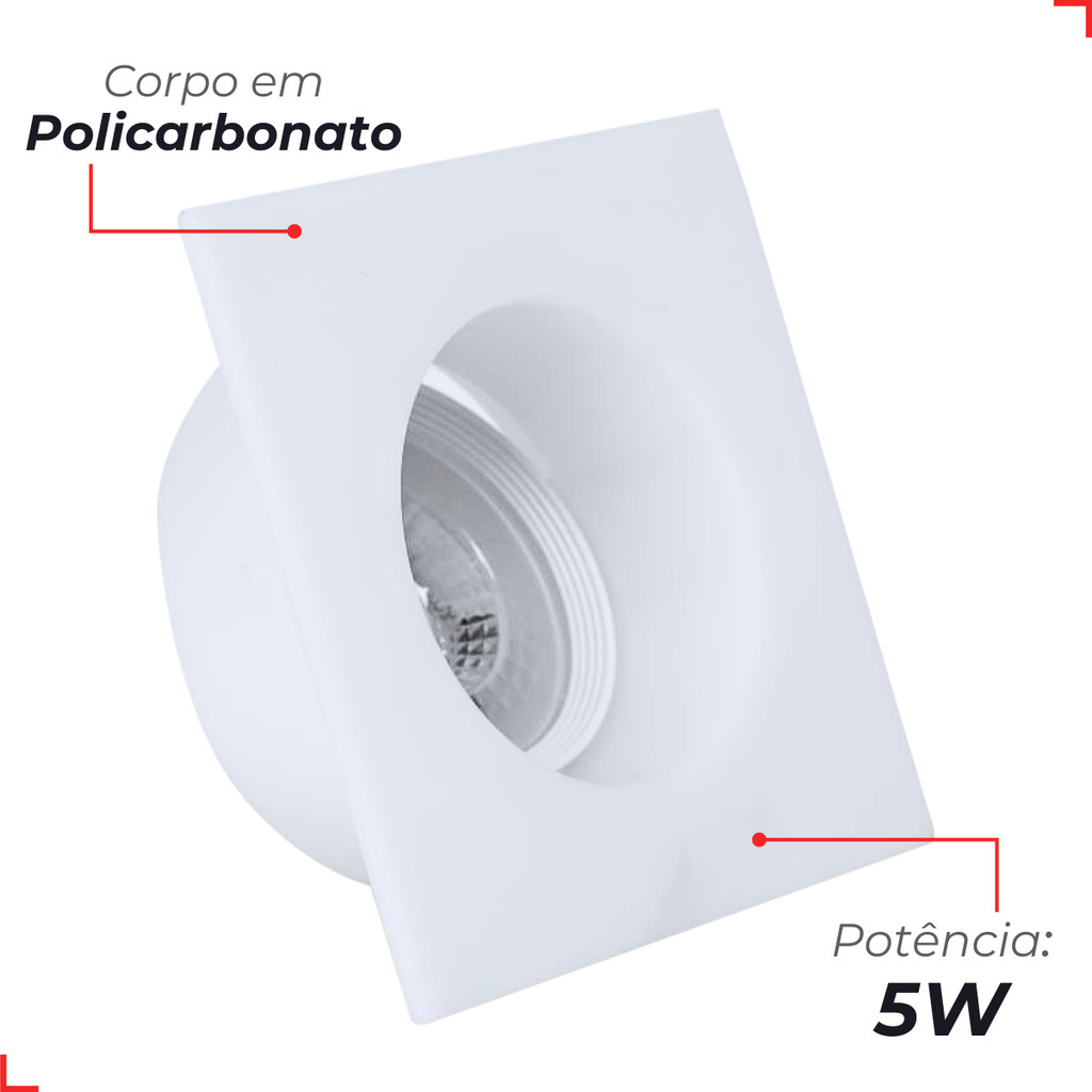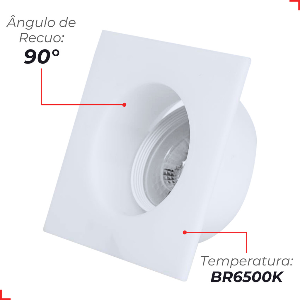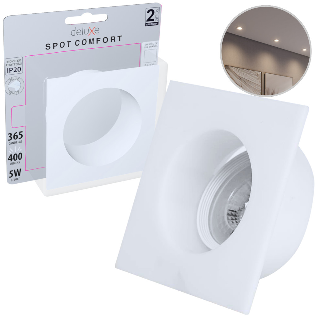 Spot de Led Comfort 6500k Branco Frio 5w Recuado Quadrado Embutir 110v/220v Bivolt Branco Cód: 908830132 Deluxe