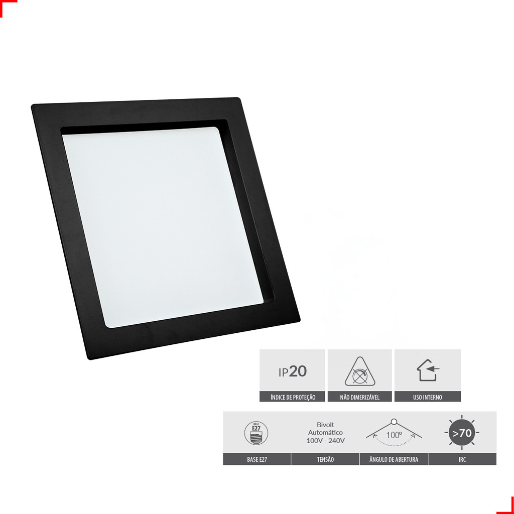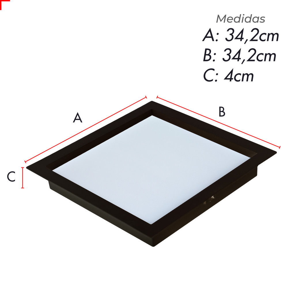 Painel Led Recuado 30w Quadrado 4000k Comfort Branco Neutro 34cm 110V/220V Bivolt Preto Fosco Cód: 908280874 - Deluxe