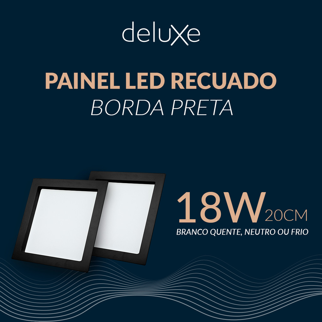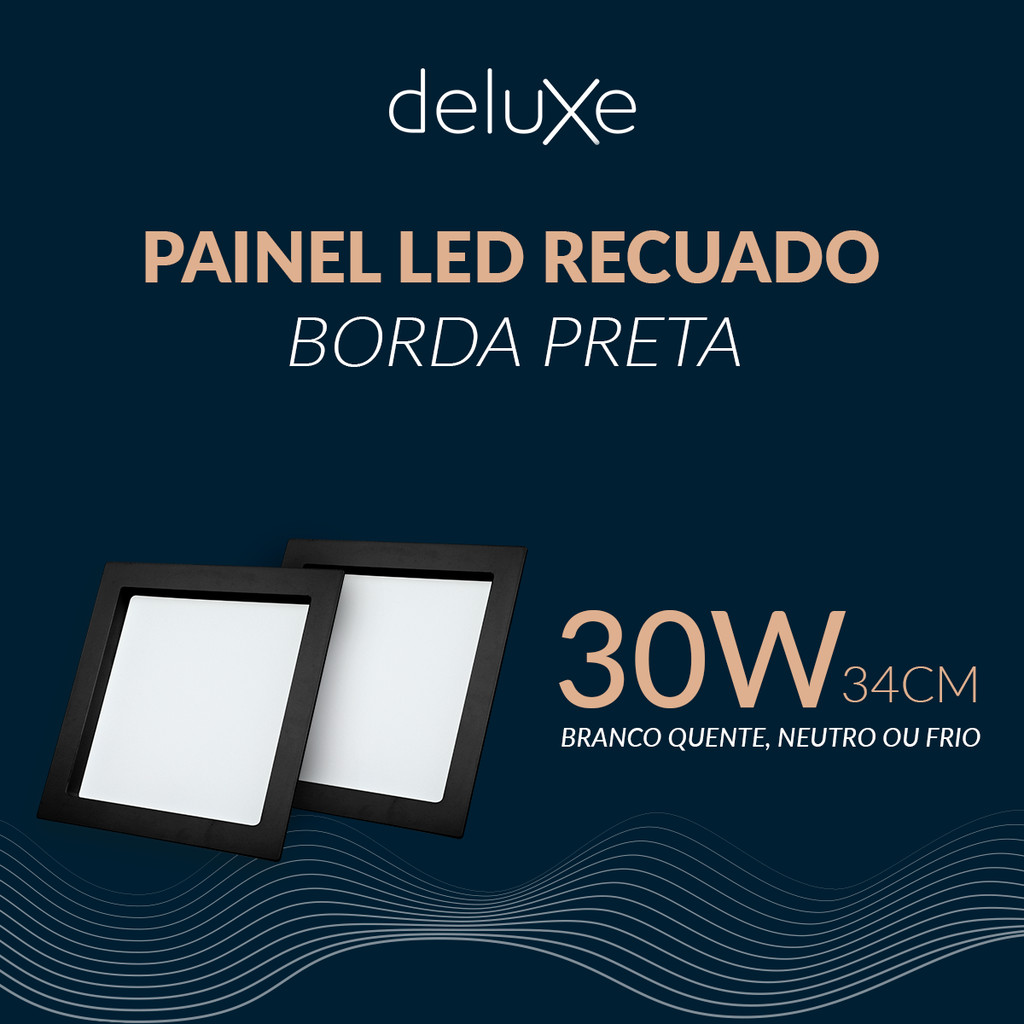 Painel Led Recuado Comfort 6w, 12w, 18w, 24w ou 30w 3000k, 4000k ou 6500k 110v/220v Bivolt Preto Deluxe By Avant