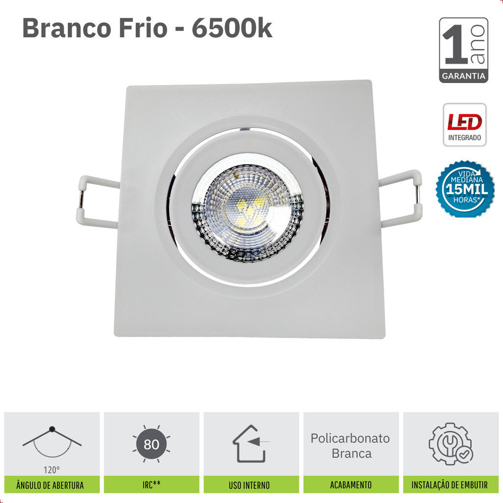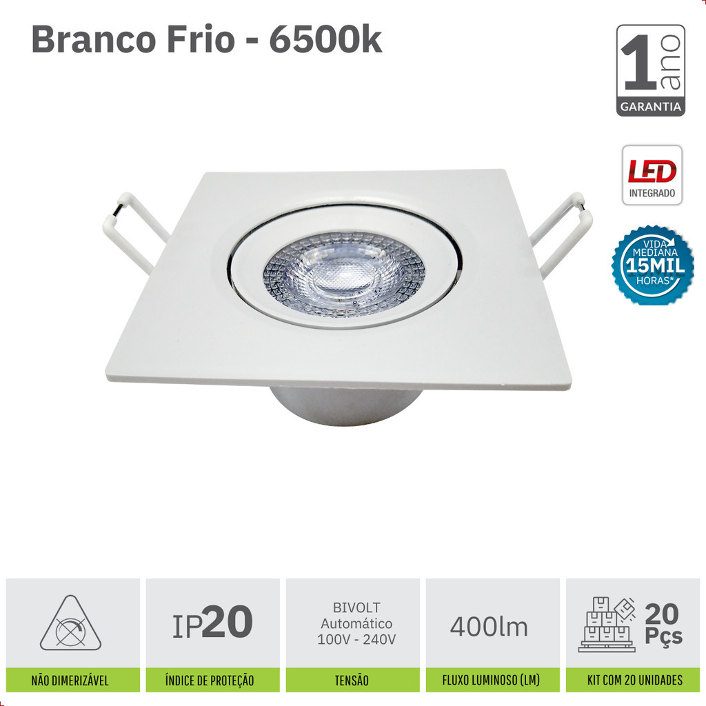 Kit 20 Spot Led 7W 6500K IP20 Embutir Quadrado Bivolt - Easy