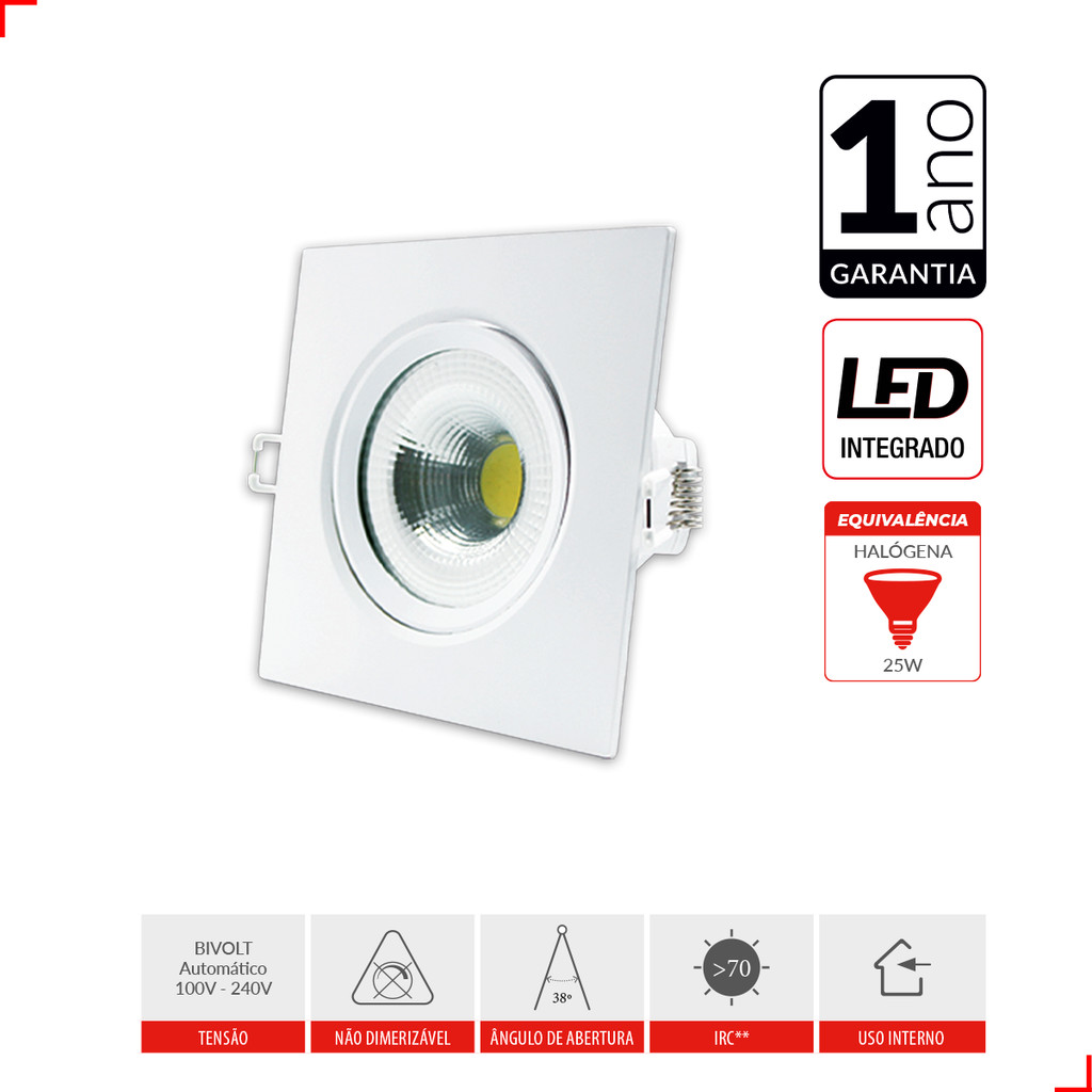Kit 5 Spot Led Authentic Embutir 5w 3000k Branco Quente 110v/220v Bivolt Ip20 Quadrado Branco Cod: 865020674 Avant