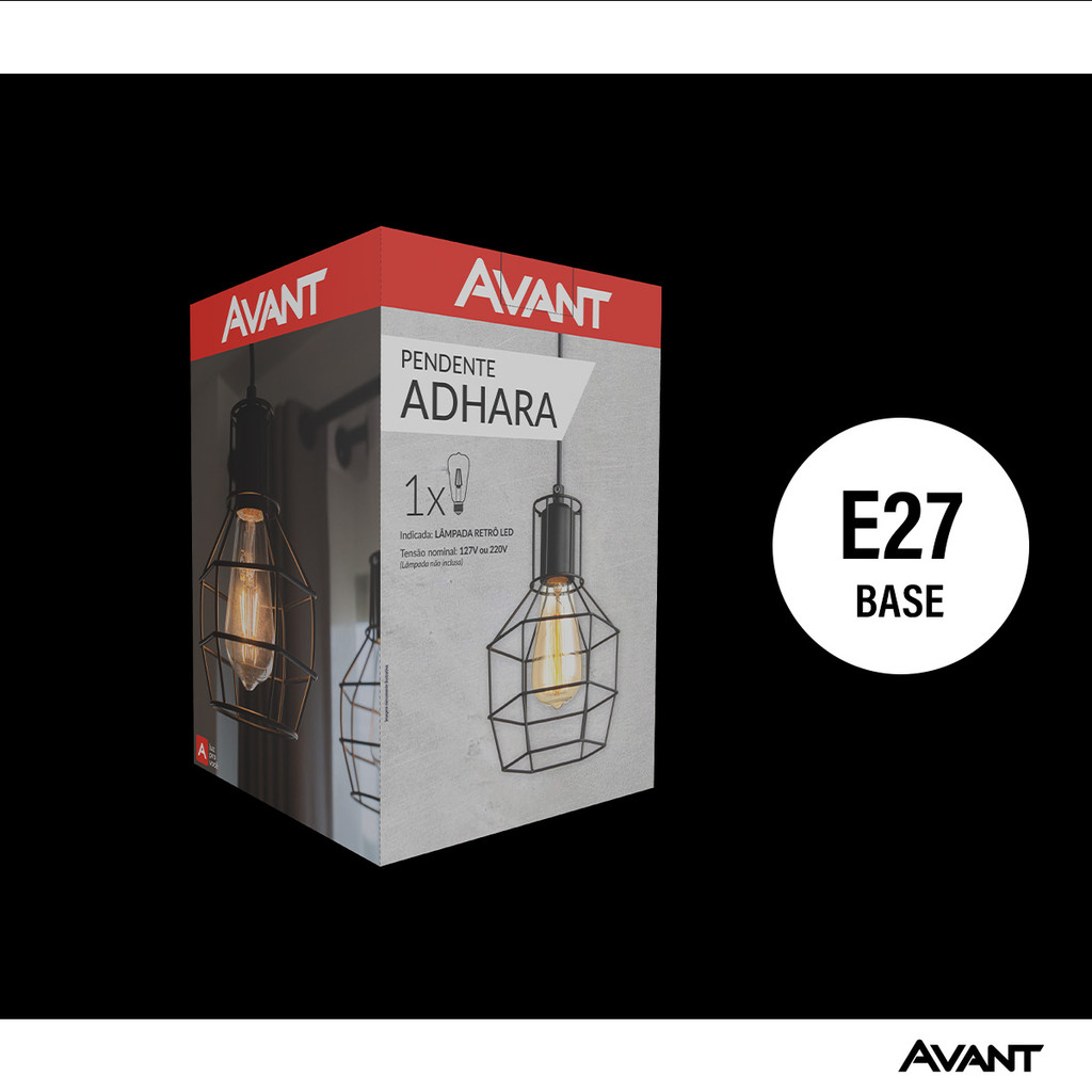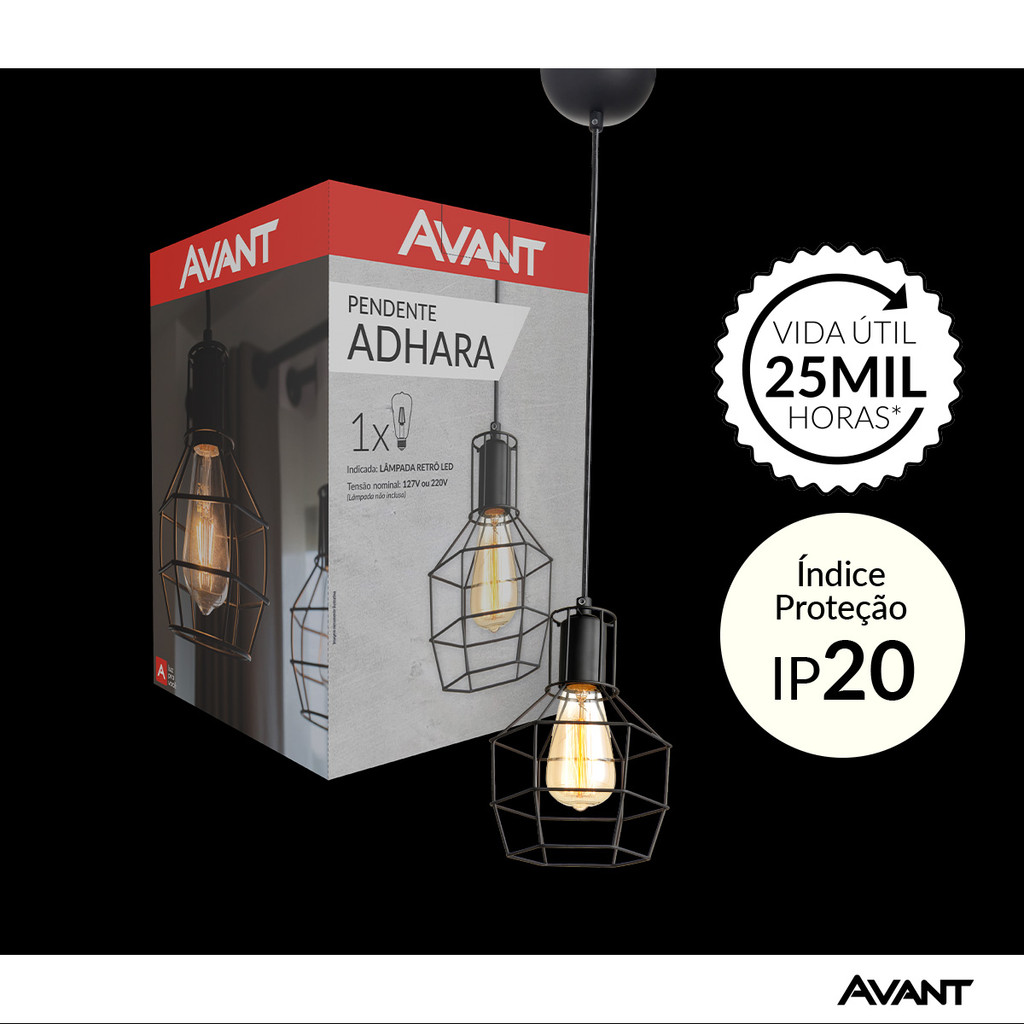 Luminaria Pendente Led Adhara Aço E27 Preto Fosco Avant