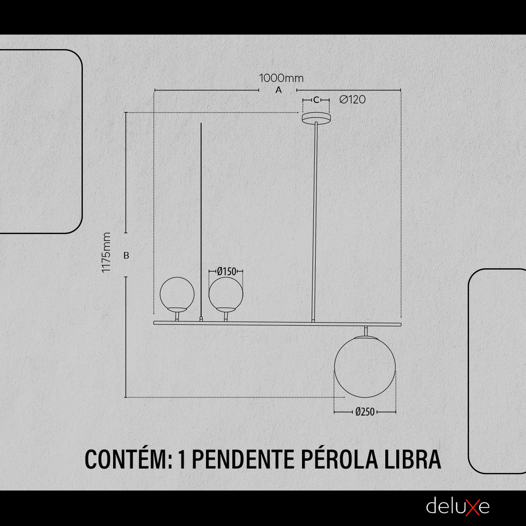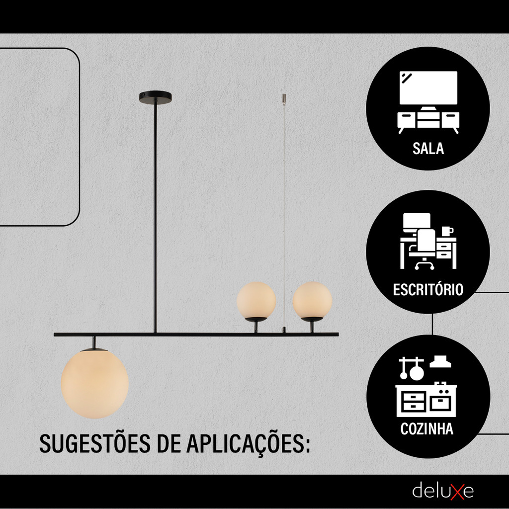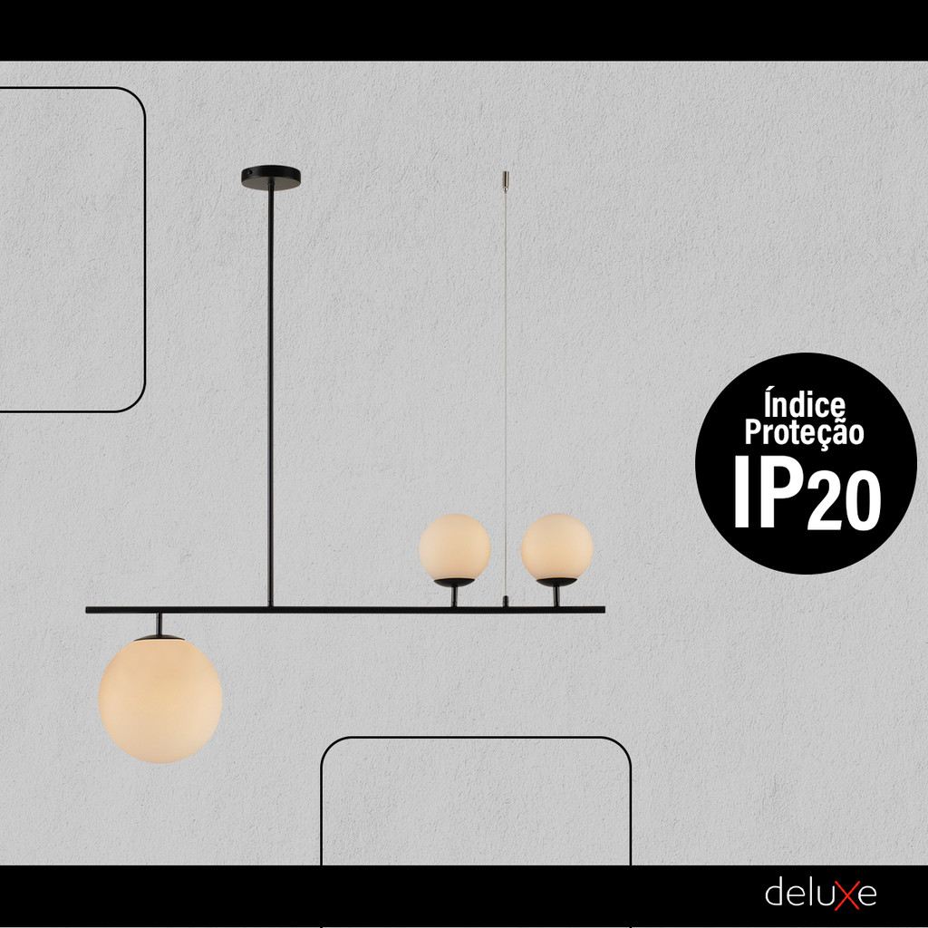 Luminaria Pendente Led Perola Libra 3xG45 Preto Deluxe
