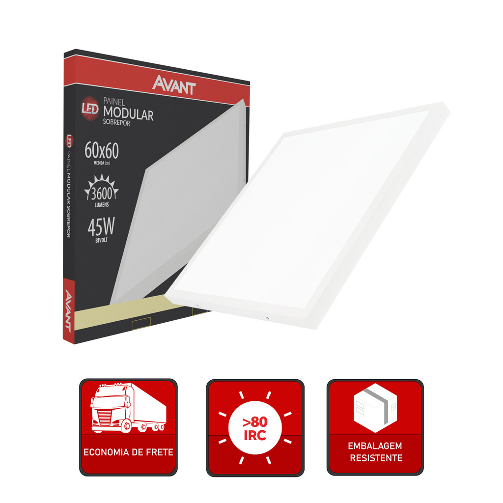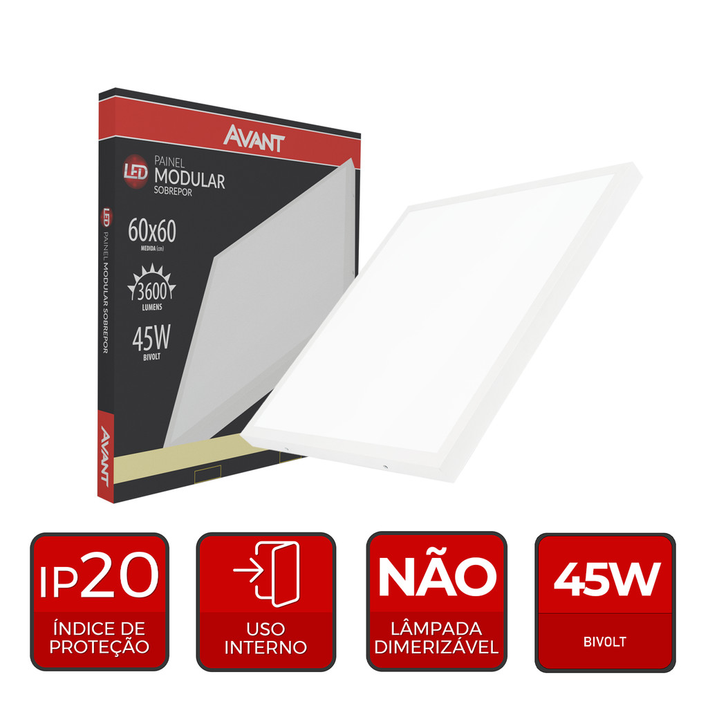 Painel Led Modular 60cm 45w 4000K Sobrepor 110v/220v Avant