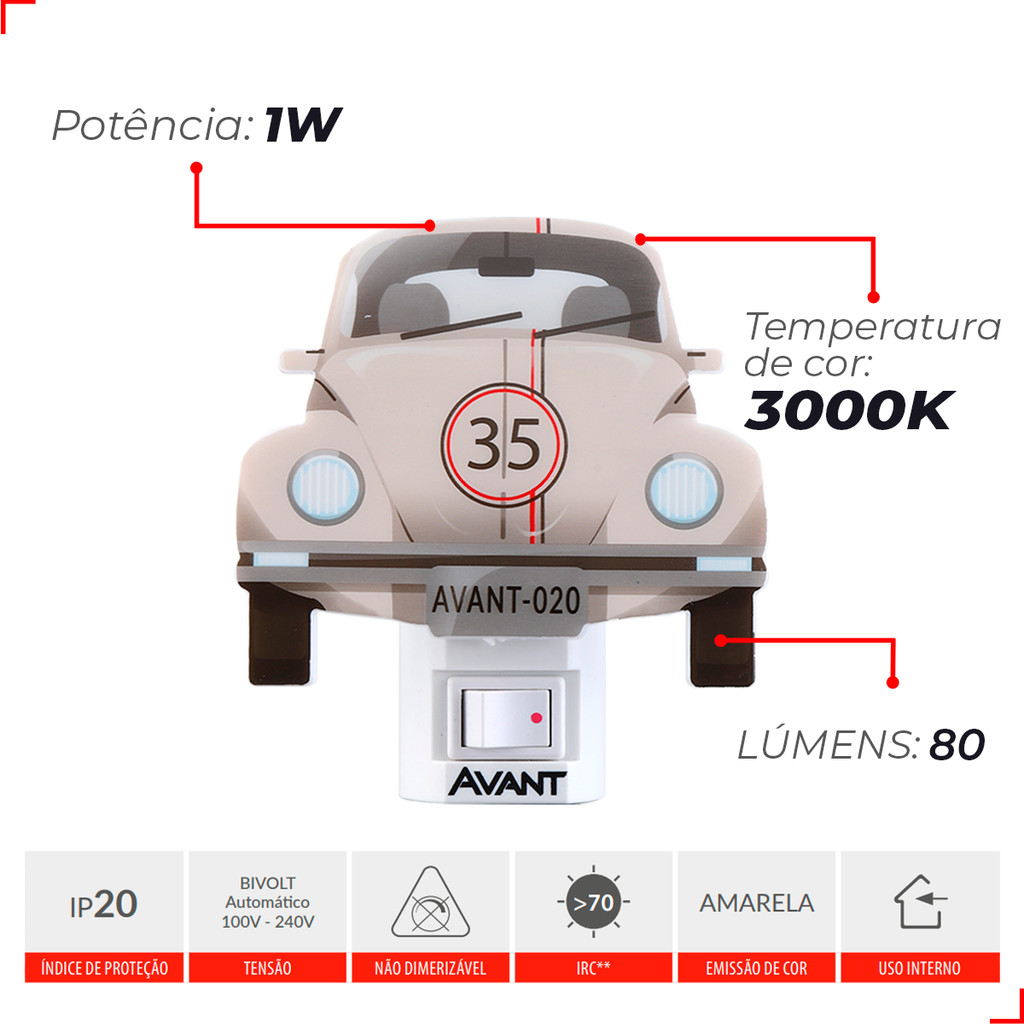 151170571 Mini Abajur Fusca Luz Noturna 1W 3000K Bivolt Avant