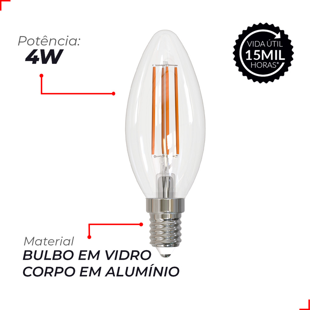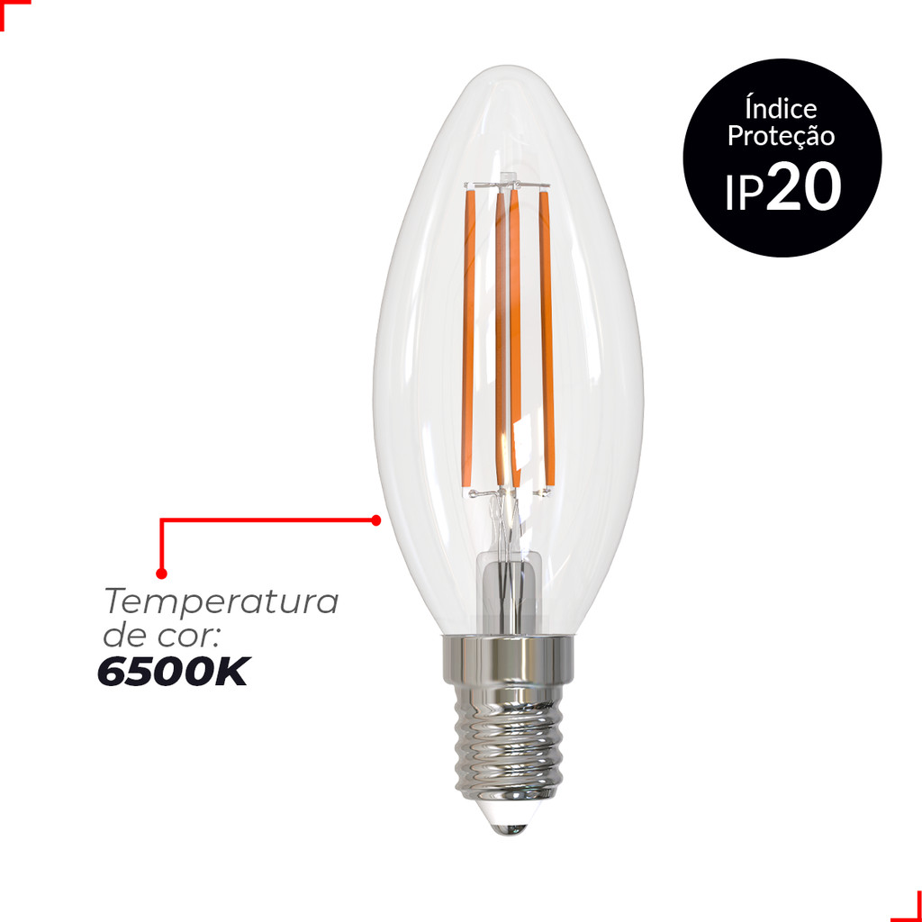 Kit 2 Lampadas Led Vela Filamento Clear 4w 6500k Branco Frio E14 110v/220v Cod: 351091379-2 Deluxe By Avant