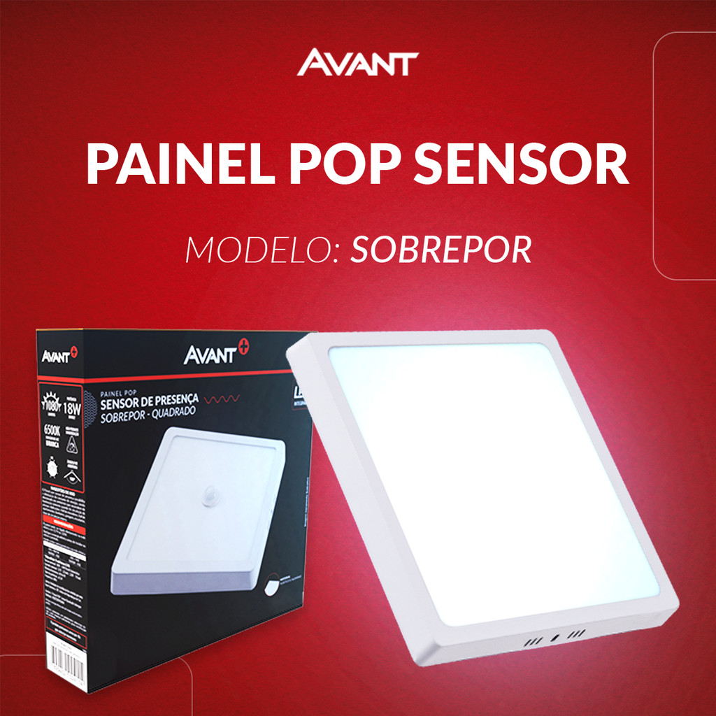 Painel Led Pop Sensor Quadrado 18w ou 24w 6500k Luz Branco Frio Bivolt 110v/220 Branco Avant