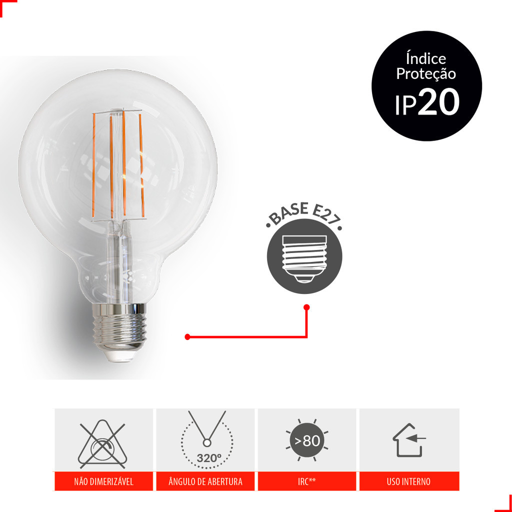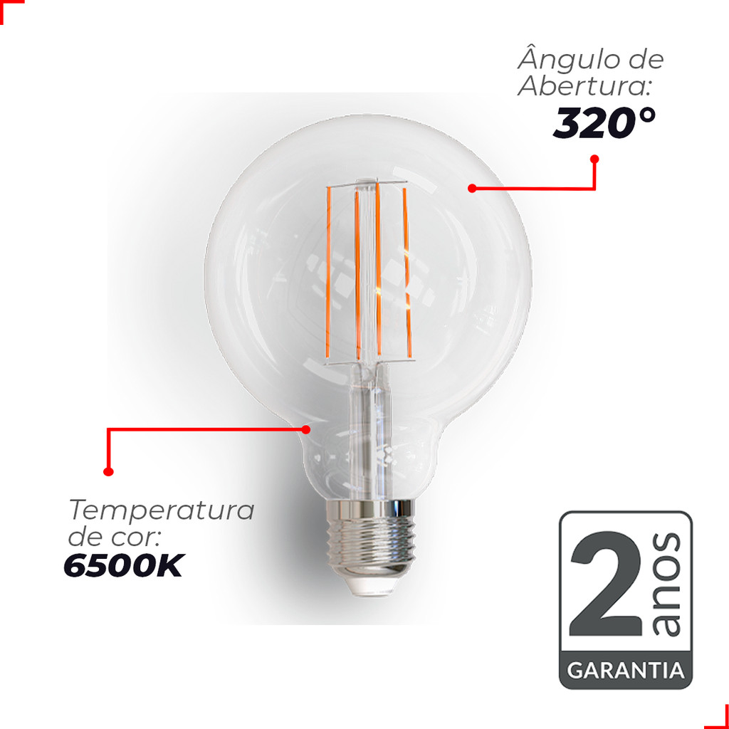 Lampada Led Globo Retro Clear G95 9W 900lm 6500K E27 Deluxe