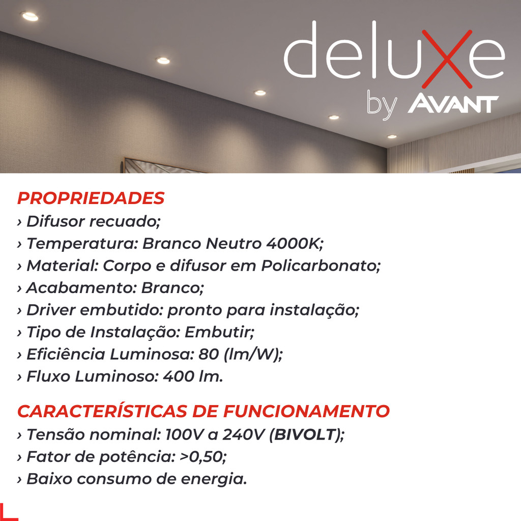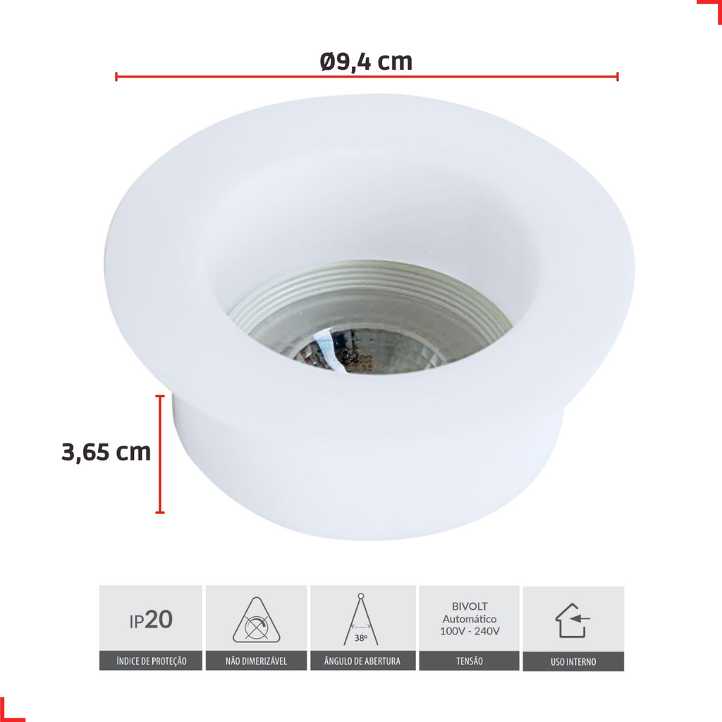 Spot Led Comfort Embutir 5w 4000k Branco Neutro 9,4cm 110v/220v Bivolt Ip20 Redondo Branco Cod:908837087 Deluxe by avant