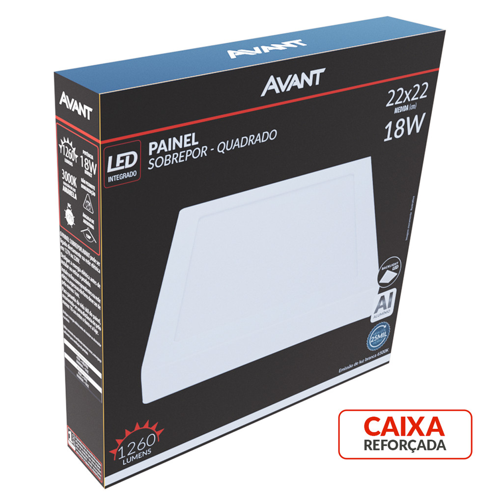 Painel Plafon Led Alu 18w 6500k Sob. Quadrado 110v/220v 22cm Avant