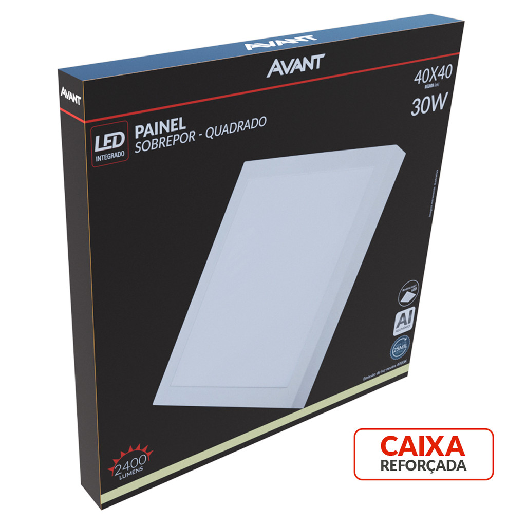 Painel Led Alu Slim 30W 4000k Sob. Quad 110v/220v 40cm Avant