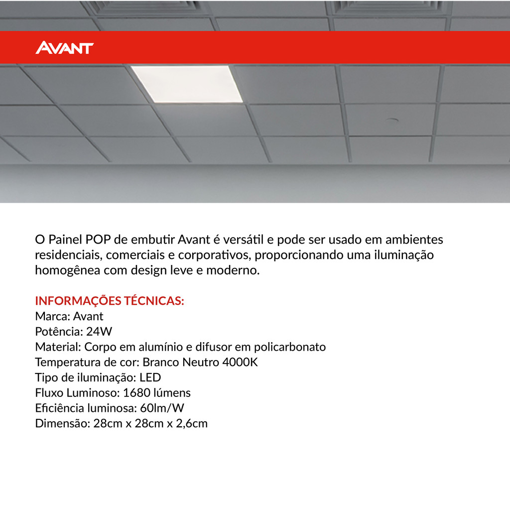 Kit 10 Painel led Plafon Pop Embutir 24w 4000k Branco Neutro 30x30 110v/220v Quadrado Preto Cod:903060877-10 Avant